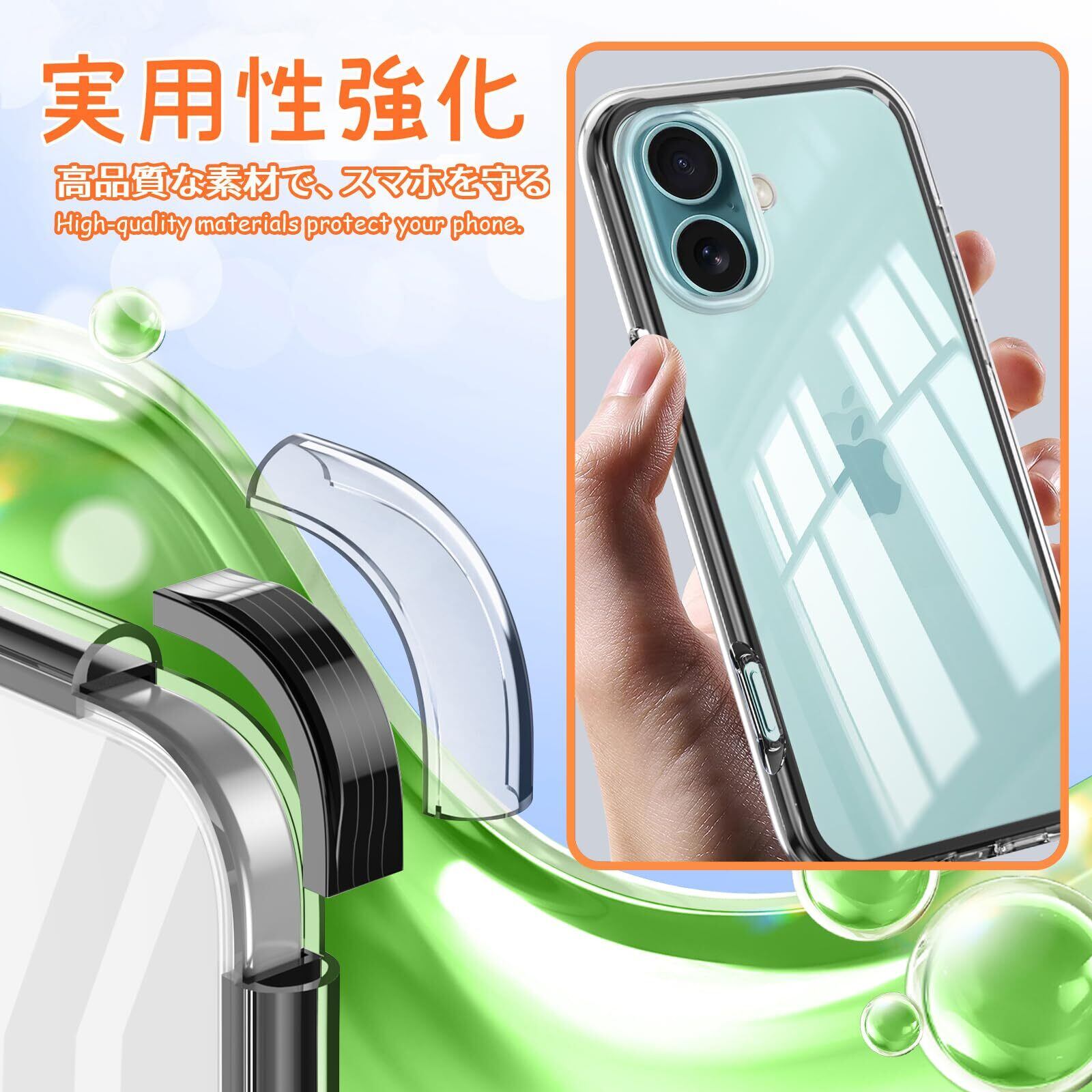 ♥【魅力な透明感】背面は透明度ポリカーボネートの素材で、iPhone16本来の美しさと高級感をそのままに映り出し。高品質のTPUは、優れたTPU材料を採用し、柔軟に変形しない、手触りを防ぎ、指紋の汗を防ぎ、触感が良好である。