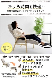 [山善] チェア リクライニングチェア (オットマン付き) 肌触りが良い テレビが見やすい ヘッド・フットリクライニング(14段階) リクライニング(7段階) 折りたたみ 高座椅子 リラックスチェア 幅58.5×奥行86.5-121.5×高さ89-99cm 組立かんたん ベージュ WHG-58OT(SBE)