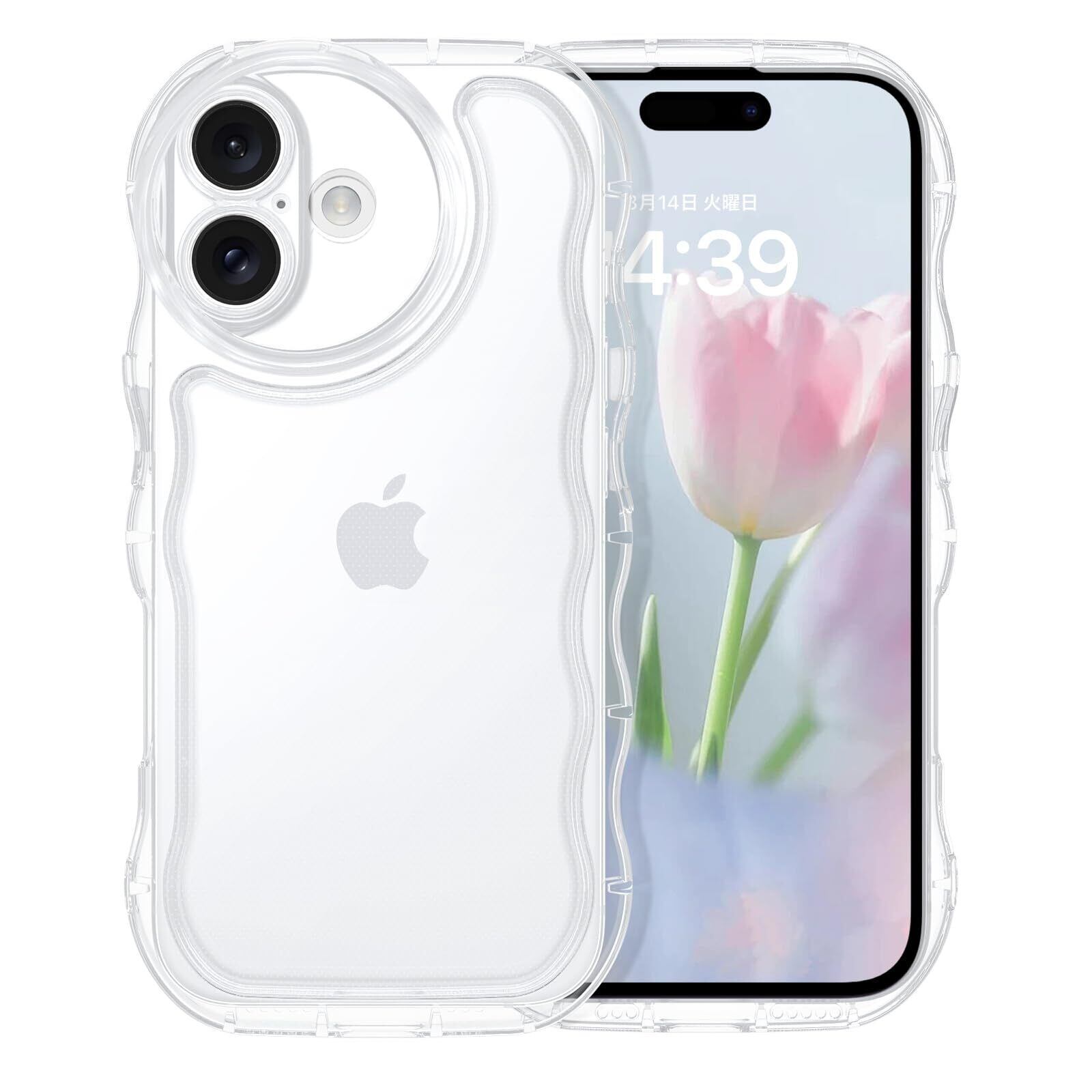 DOMAVER iPhone 16 用 ケース ウェーブ 透明 可愛い ケース うねうね 韓国 クリア 黄ばみなし 傷に強い背面 滑り止め ストラップホール付き 画面レンズ保護 指紋防止 耐衝撃 いPhone 16 アイフォン16 スマホカバー クリア。