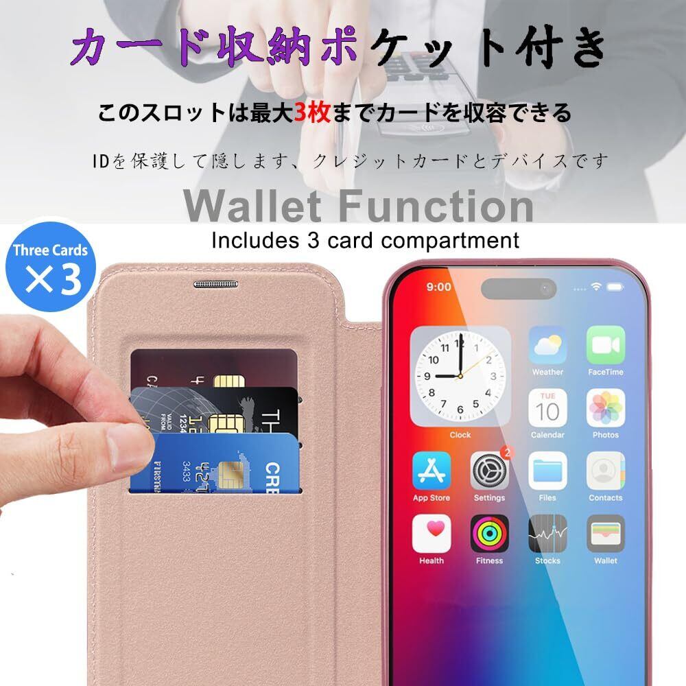 MuZiF iPhone 16 用 ケース 手帳型 Magsafe対応 クリア 背面 透明 高級なPUレザー 永久磁石 マグネット スマホケース カード収納、人気財布型 カバー 軽量 アイフォン16 用 手帳カバー (iPhone 16用,ローズゴールド)
