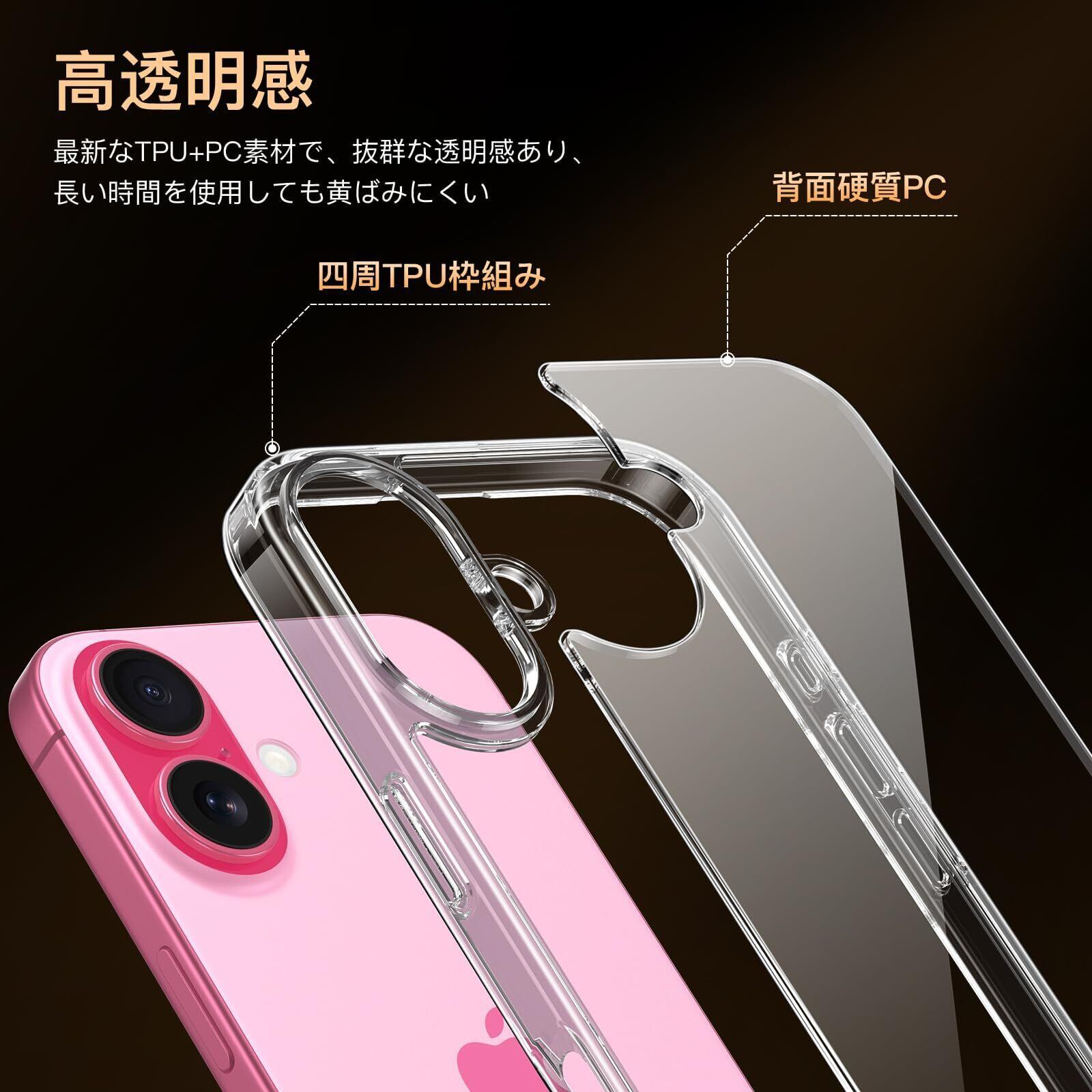 対応機種:iphone16 専用ケース カメラフィルム2枚、ガラスフィルム2枚付き、ケースを購入だけ周辺製品ももらえ、コスパが高いし、スマホに全な保護を提供します。 注意:ご購入の前に必ず機種を確認してください。お客様へ:ケース本体を保護するため、背面と内部にプラスチックの保護膜が付いていますから、これは傷ではありません、透明度と散熱に影響しないようにご使用前に剥がしてください。