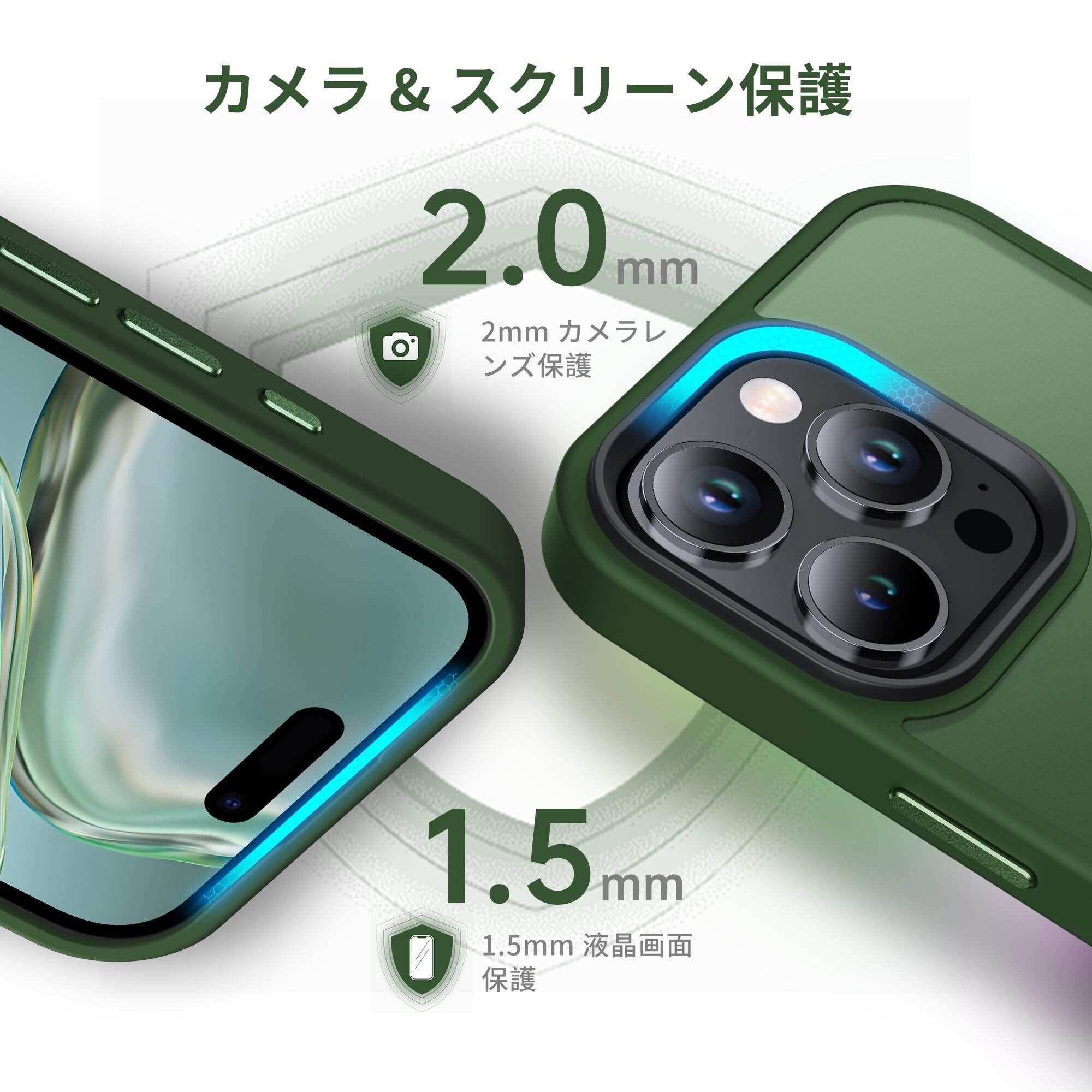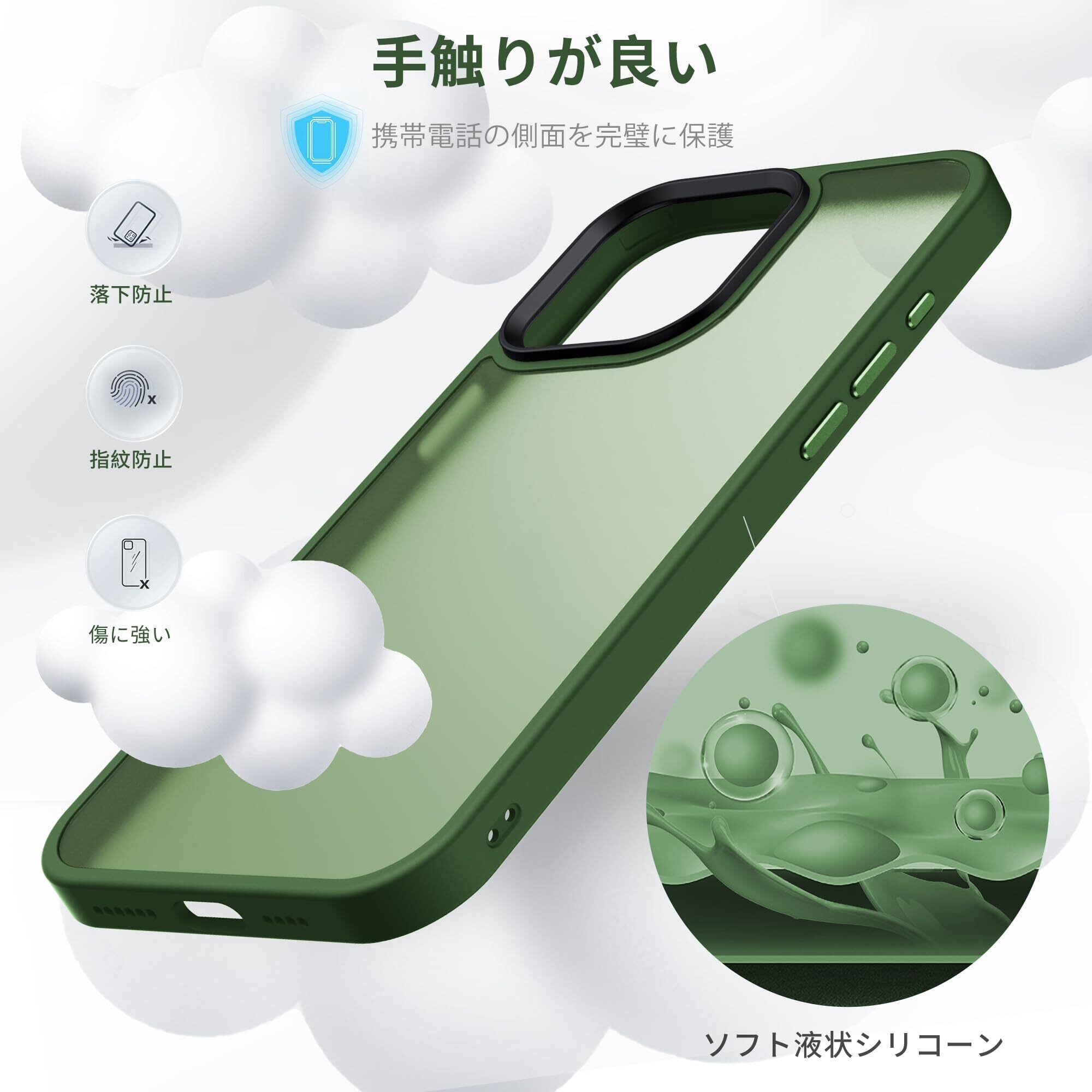Anqrp iPhone 16 Pro Max 用 ケース 半透明 耐衝撃 滑り止め 米軍MIL規格 指紋防止 マットケース ストラップホール付き ワイヤレス充電対応 スマホケース アイフォン16 プロマックス カバー 6.9インチ グリーン