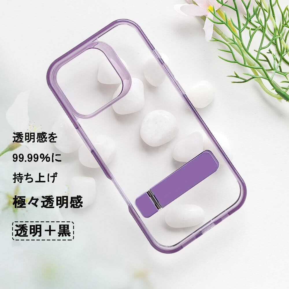 【極限透明感・機能スタンド】スマホケース 対応 iPhone 16 Pro Max クリアケース スタンド機能 (メタルキック 3wayスタンドモード) 衝撃吸収 黄変防止/擦り傷防止 耐久性 薄型 軽量 スマホケース アイフォン16プロマックス 対応 カバー (パープル)