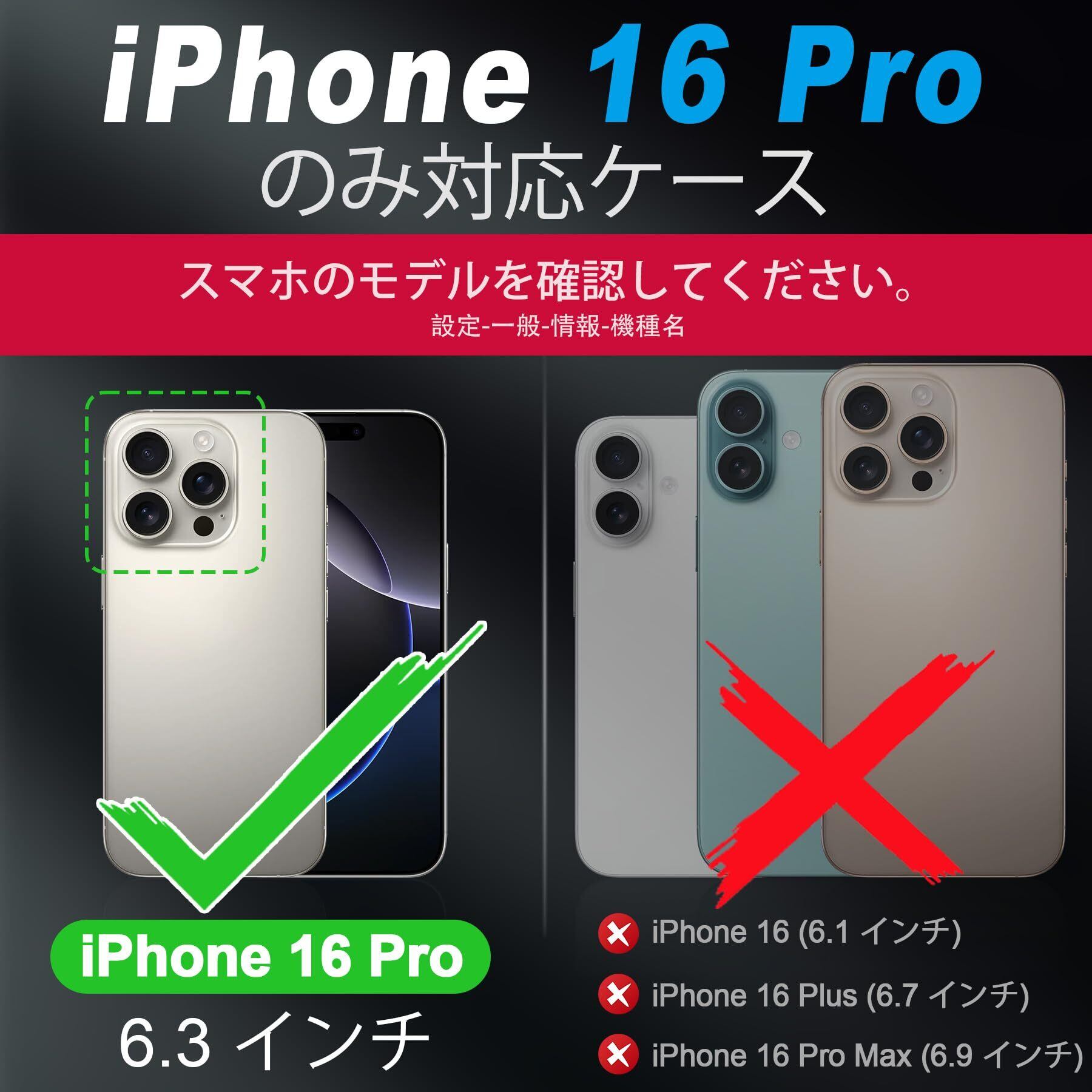 【対応機種・型番確認】iPhone16 Pro(6.3インチ、2024年発売)のみに対応しておりますが、他の型番が併用できません。注文する際に間違いないようご確認頂ければ幸いです。万が一商品に初期不良・破損などがある場合、注文履歴画面より出品者にご連絡お願い致します。