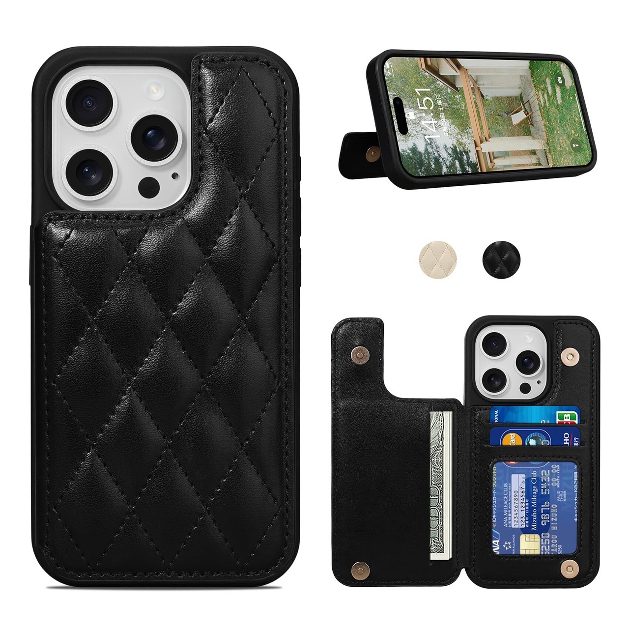 Shlybaay iPhone 16 Pro ケース 背面 手帳型 カード iPhone16 Pro 対応 背面ケース iPhone 16Pro 用 手帳型ケース カードケース キルティング 背面収納 カバー iPhone 16 Pro 用 スマホケース アイフォン 16 プロ 用 カード収納 チェック柄 格子柄 女性 菱形 おしゃれ 可愛い 6.3inch T1N ブラック