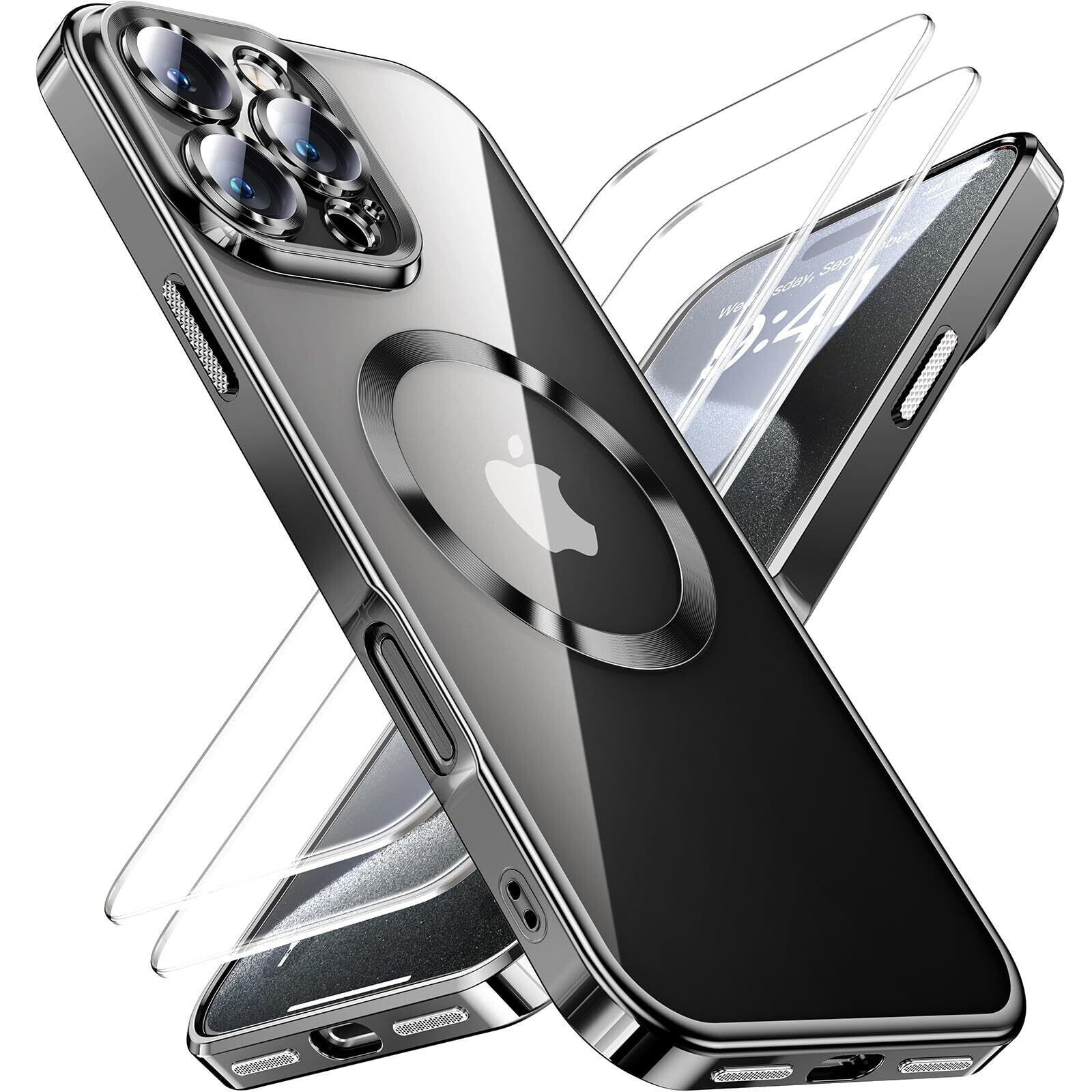【本体の色・人気五色】JUESHITUO iPhone 16 Pro ケース MagSafe充電対応 黄変なし 2Xスクリーン保護付き 一体型レンズ保護 人気 クリア 耐衝撃 米軍MIL規格 耐久性 SGS認証 カバー ストラップホール有り アイフォン16 Pro 用 カバー 6.3 インチ ケース ブラック