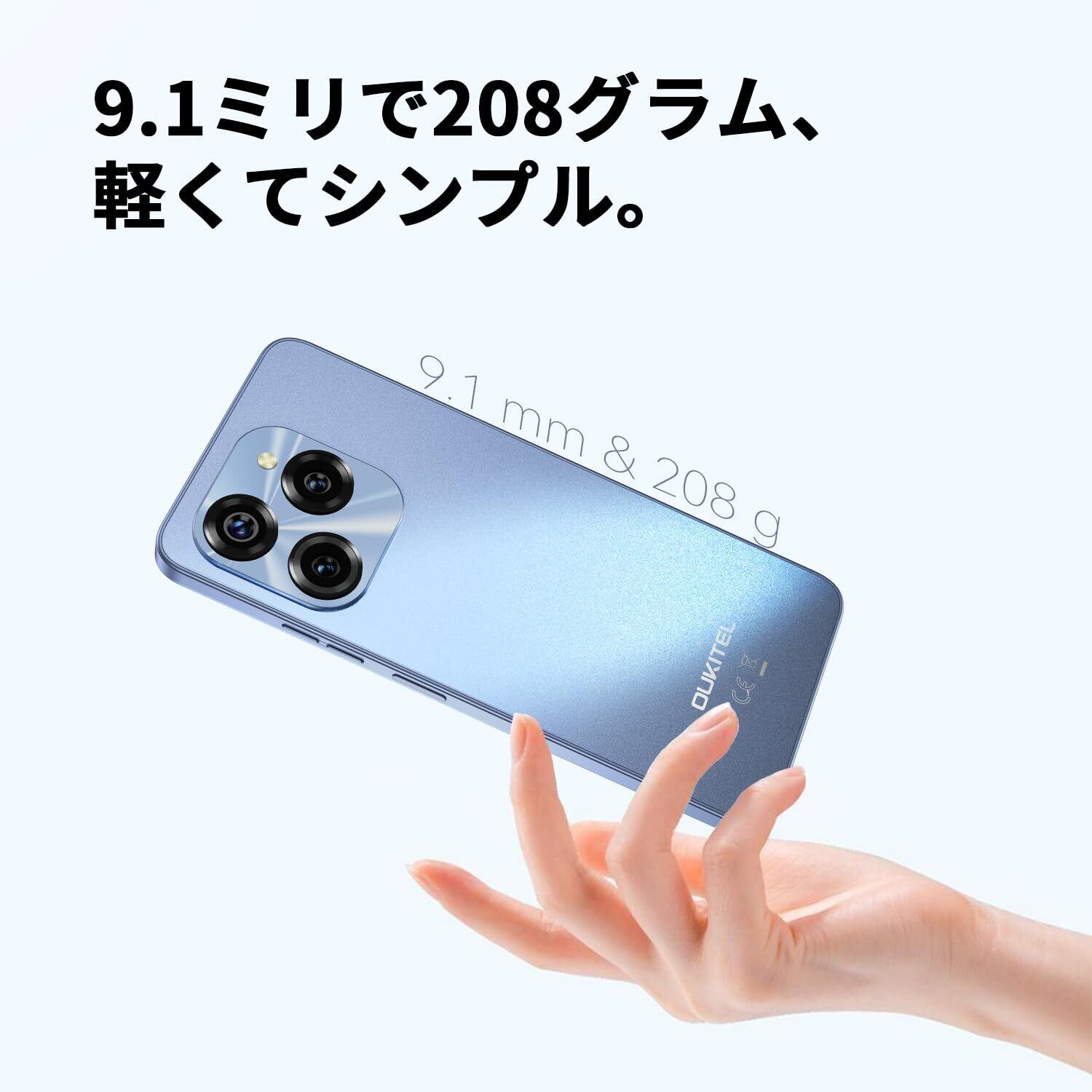 OUKITEL C50 スマホ 本体 SIMフリー - 5G スマートフォン 90Hz 6.8インチHD+ すまほ アンドロイド 14 24GB + 128GB(1TB拡張可能)格安スマホ本体 5150mAh オクタコア 50MPカメラ 顔指紋認証 GPS Wi-Fi スマホ 本体 携帯 ブルー
