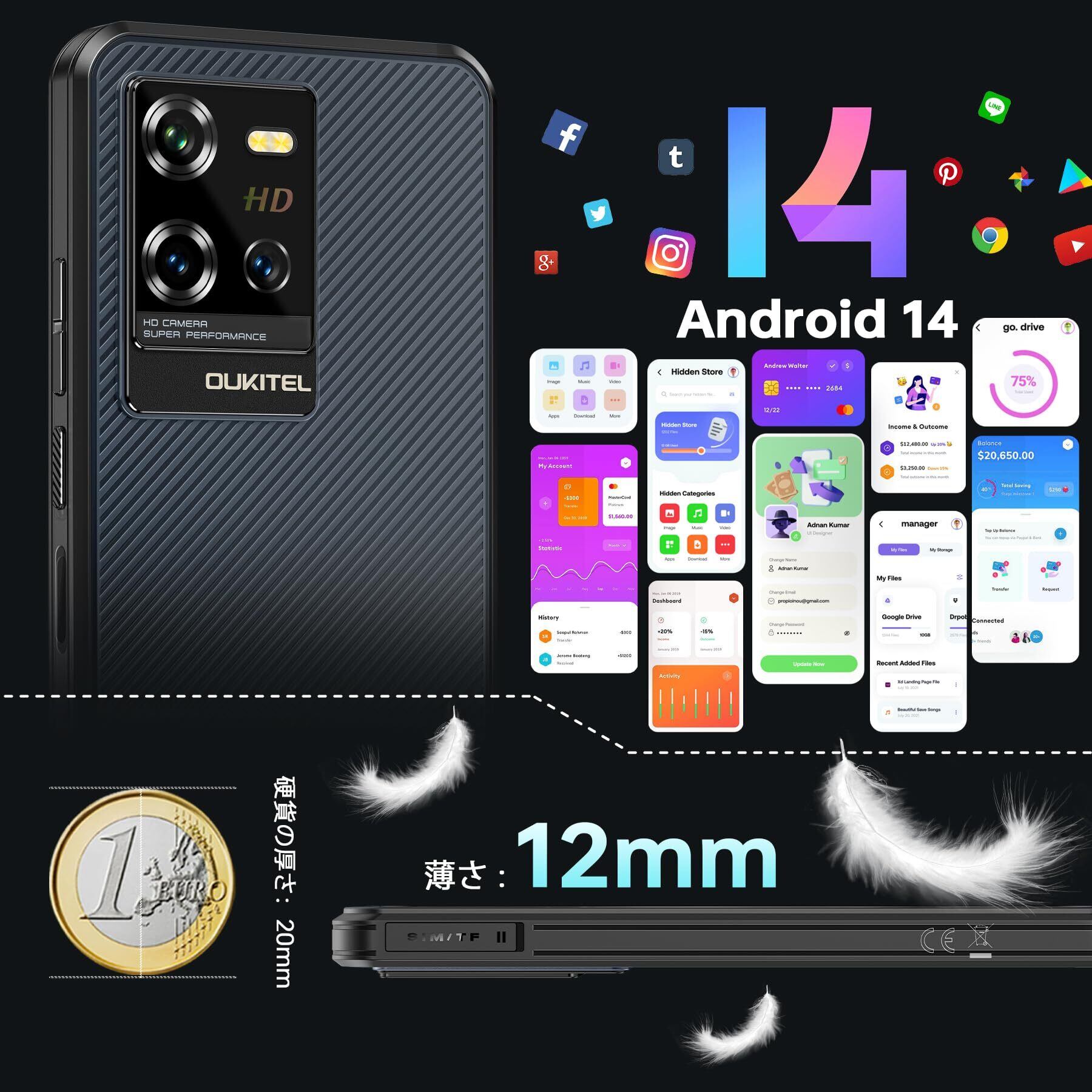 「5G」OUKITEL WP50 SIMフリー スマホ 本体 16GB RAM+256GB ROM 1TBまで拡張 タフネススマホ 防水防塵耐衝撃 6.6インチFHD+大画面 薄型 48MPカメラ Android14 6500mAh ゲーミングスマホ 5GデュアルSIM スマートフォン NFC|GPS|顔/指紋認識|技適認証済 携帯電話|Google Pay搭載