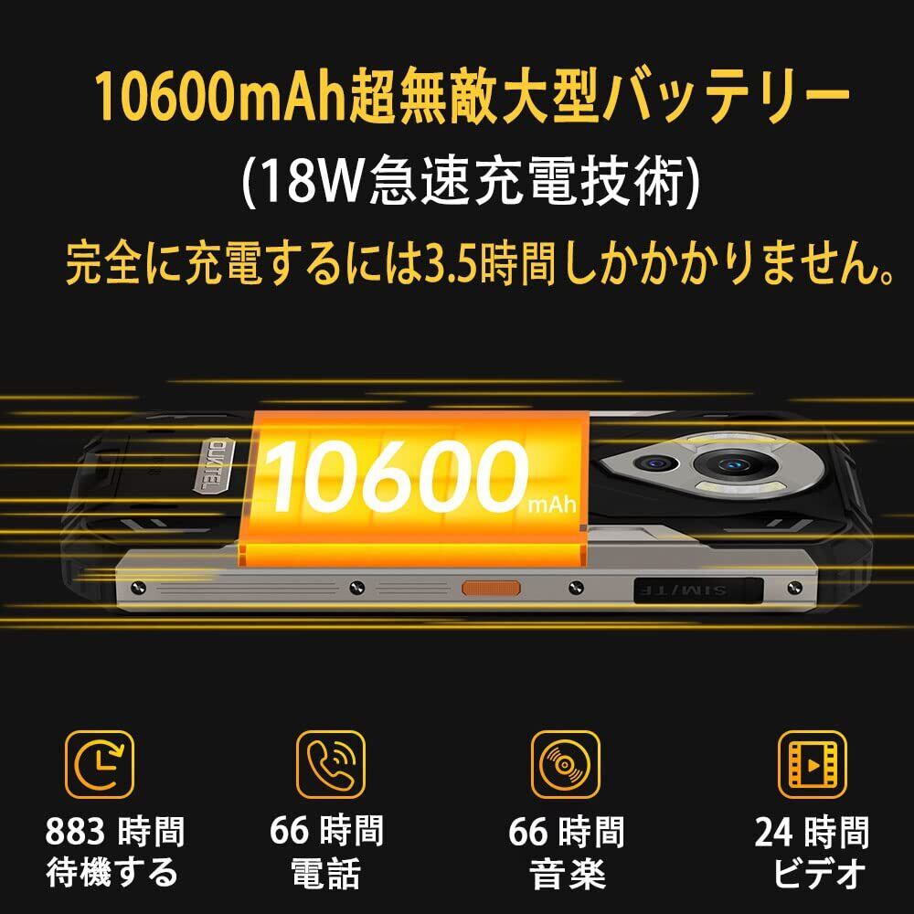 OUKITEL WP16 SIMフリースマホ 本体 防水防塵耐衝撃 Android11スマホ 10600mAh大型バッテリー 8GB RAM+128GB ROM 6.39” HD 12MPメインカメラ+20MPナイトビジョンフィルライト+20MPフロントカメラ 指紋のロック解除 NFC、GPS、OTG 1年間の保証(黒)