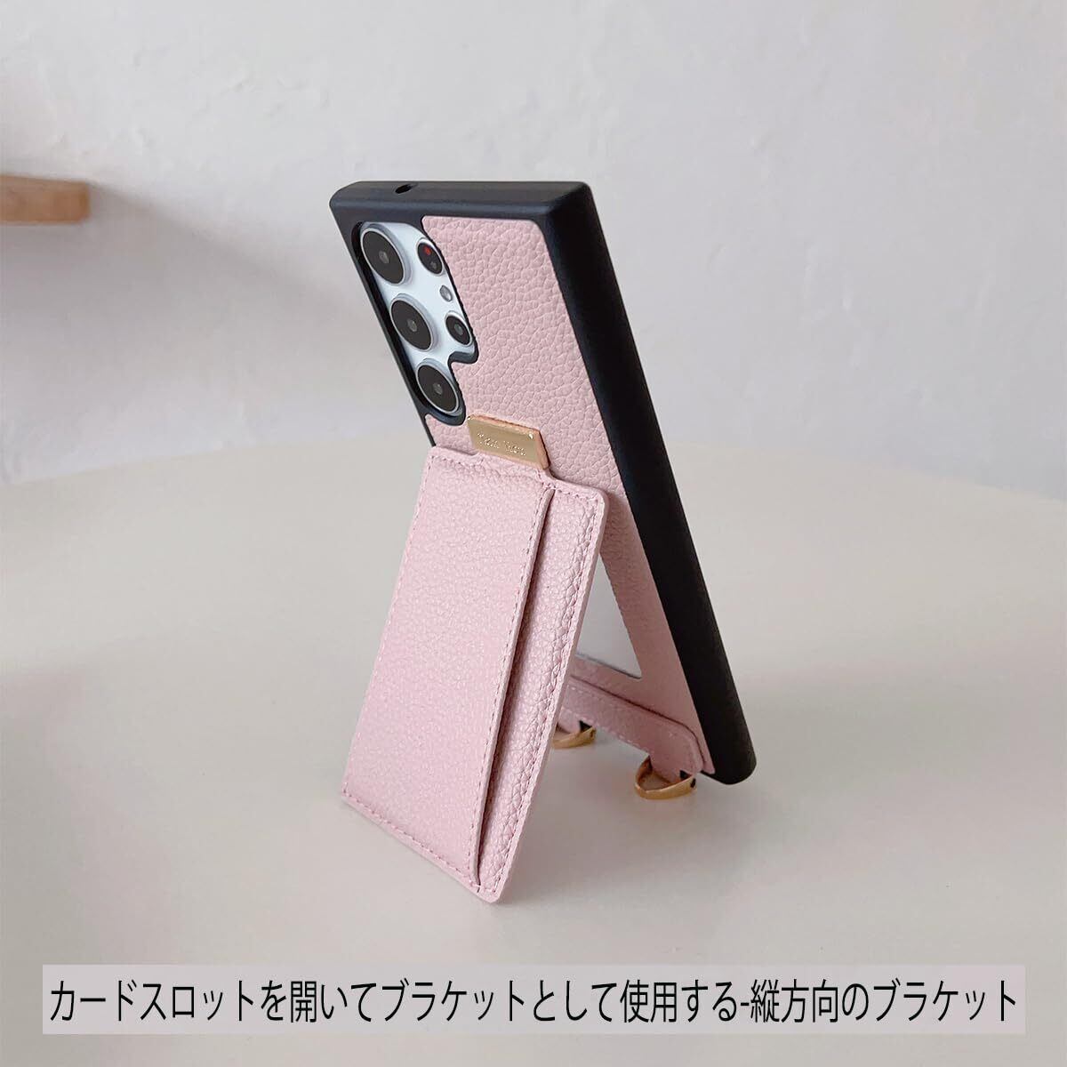 NanHou Samsung Galaxy S24 Ultra ケース 手帳型 高質PU ファッション SC-52E SCG26 手帳型 斜めショルダーストラップ付き(長さ調整可能)耐衝撃 保護 カバー 内蔵 自吸式開閉 マグネット 背面鏡付き 人気 携帯 SC-52E カバー 女性 上品 カードポケット スタンド機能 SCG26 ケース - ピンク