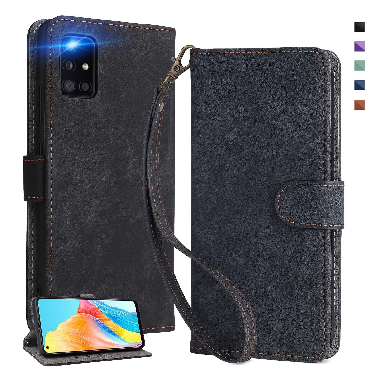UnivoColors Galaxy A51 5G (SC-54A/SCG07) 手帳型 スマホケース 携帯カバー 高級合皮 RFIDブロッキング カード収納 専属ストラップ同梱 マグネット開閉 横置きスタンド機能 放熱性 着脱しやすい 全面保護 カメラ保護 衝撃吸収 落ち着いた色(ブラック)
