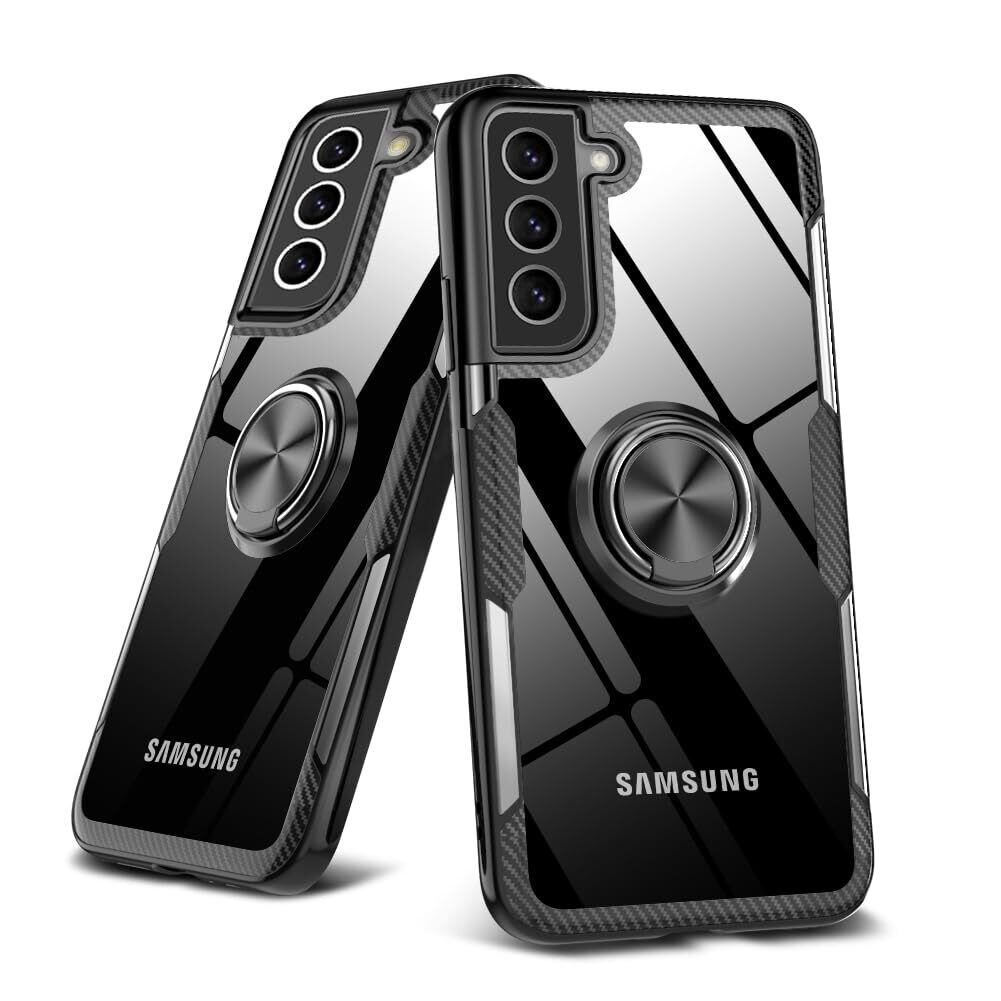 Galaxy S21 ケース クリア リング付き 耐衝撃 薄型 全面保護 背面強化ガラスケースクリア TPU バンパー スタンド機能 透明 落下防止 耐衝撃 擦り傷防止 指紋防止 360度回転 マグネット 車載スタンド対応 ギャラクシー S21ケースカバー 薄型 軽量 人気 一体型 全面保護カバー 黒 B234