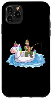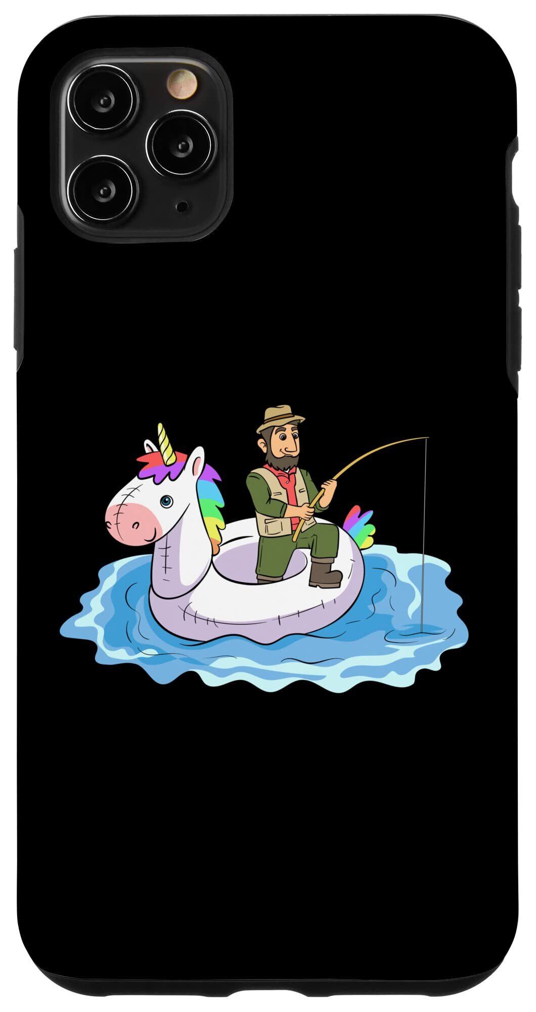 iPhone 11 Pro Max 面白い 釣り ユニコーン 水泳リング ゴム製 ボート 釣り人 スマホケース