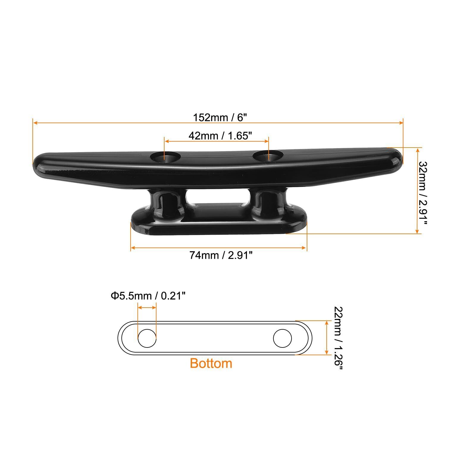 素材: ナイロン、全体のサイズ:152 x 22 x 32 mm(L*W*H)、ベースの長さ:74 mm、穴の直径:5.5 mm、穴のピッチ:42 mm、パッキングリスト:2 x ボート用クリート