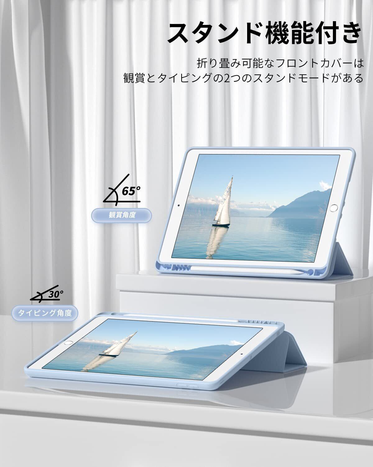 【三つ折りスタンド機能】強力なマグネット式3つ折りスタンドにより、iPadの安定した表示モードと入力モードを実現。動画視聴、読書、チャット、WEBなどの時にすごく助かりますよ。