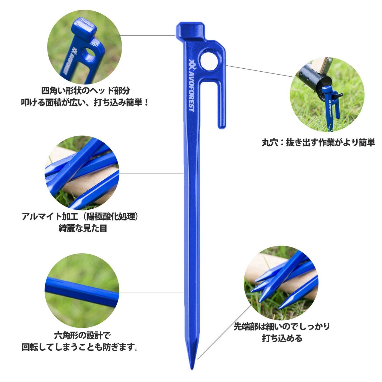 【業界初】AVOFOREST 鍛造ペグ アルミ製 ペグ キャンプペグ 20cm/25cm/30cm 4本/8本セット 一体成型 溶接なし テントペグ 超軽量 高強度 錆びにくい テント用 タープ用 アウトドア/キャンプ 用品 岩場 砂浜 砂利 硬い土 芝生