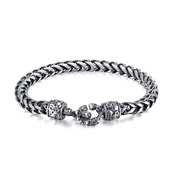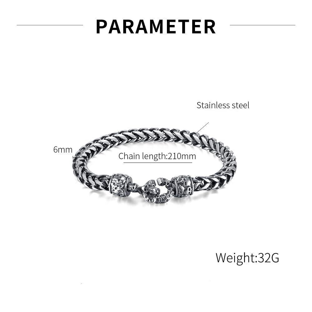 [Rockyu] ブレスレット メンズ シルバー 髑髏ブレスレット ドクロ ステンレスチェーン 210mm レトロ スカルブレスレット メンズブレスレット ステンレス製 金属アレルギー対応 ハロウィン 記念日 プレゼント アクセサリー