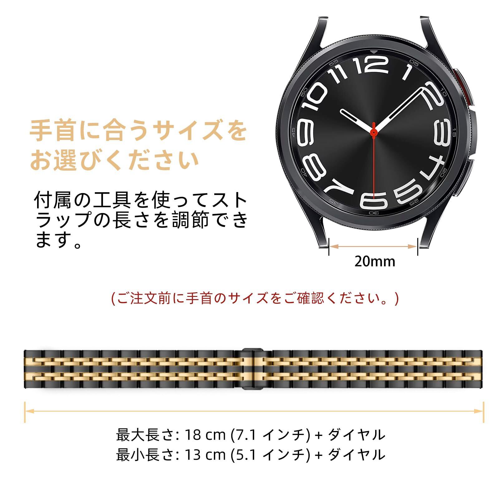 [Hinnwer] 20mm バンド Samsung Galaxy Watch FE/Watch 7/6/5/4 40mm 44mm/Watch Active 2/1 対応 交換ベルト ステンレス製 金属 バンド 時計バンド 調節可能 交換バンド Samsung Galaxy Watch 6 Classic/Watch 5 Pro/Watch 4 Classic 用 (ブラック/ゴールド)