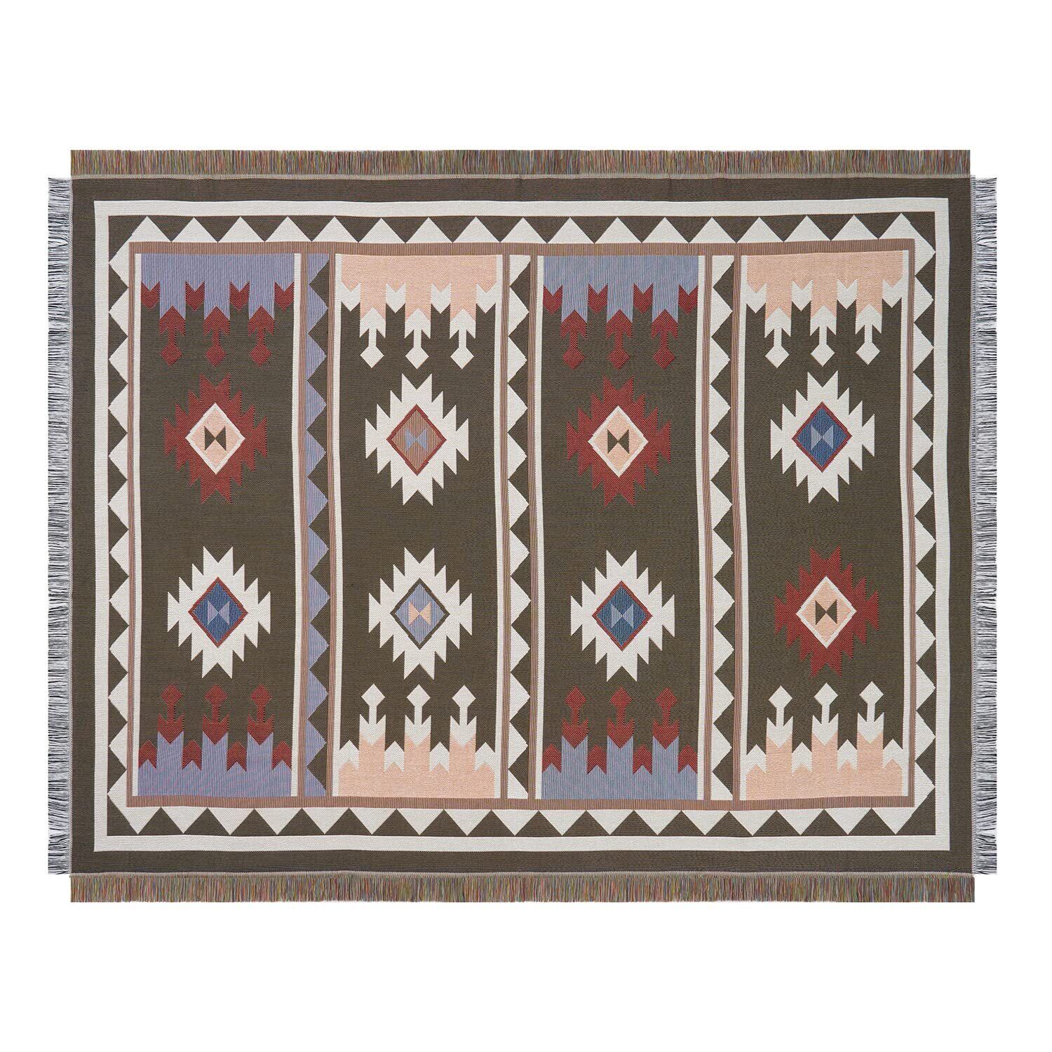 Peel Forest エルパソブランケット ラグ ブランケット カバー マルチカバー ネイティブ柄 オルテカ柄 キリム お座敷スタイル,濃い緑色 大判160X220cm…
