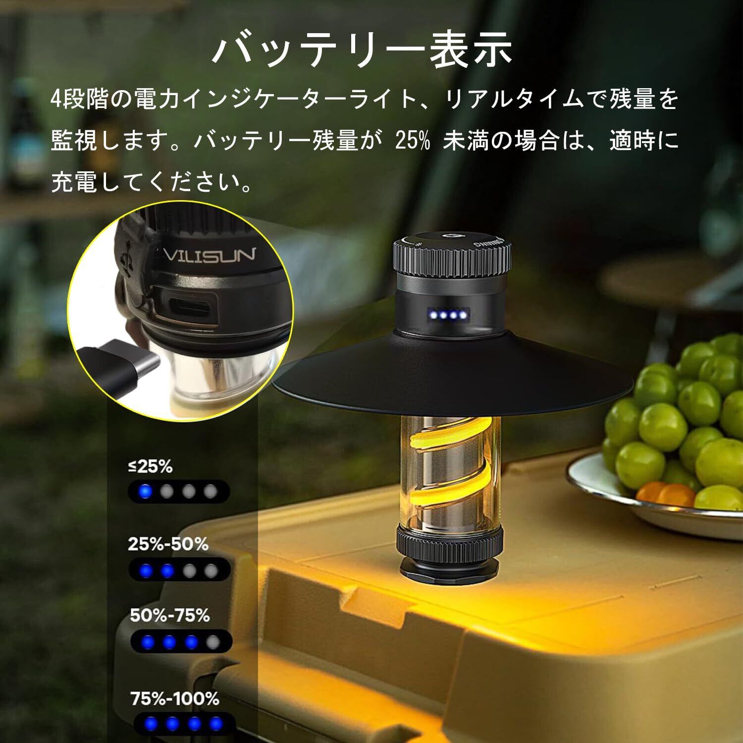 【USB充電式】このキャンプライトはUSB type-c充電ケーブルで充電でき、より便利で環境に優しいです。 この充電式ライトは2000mAHのバッテリー容量を内蔵しており、この屋外充電式ライトはフル充電で6〜48時間連続使用できます。製品を受け取った後にライトが点灯しない場合は、輸送中の衝突により誤ってスイッチがオンになった可能性があります。充電には製品に付属の USB-C を使用することをお勧めします。