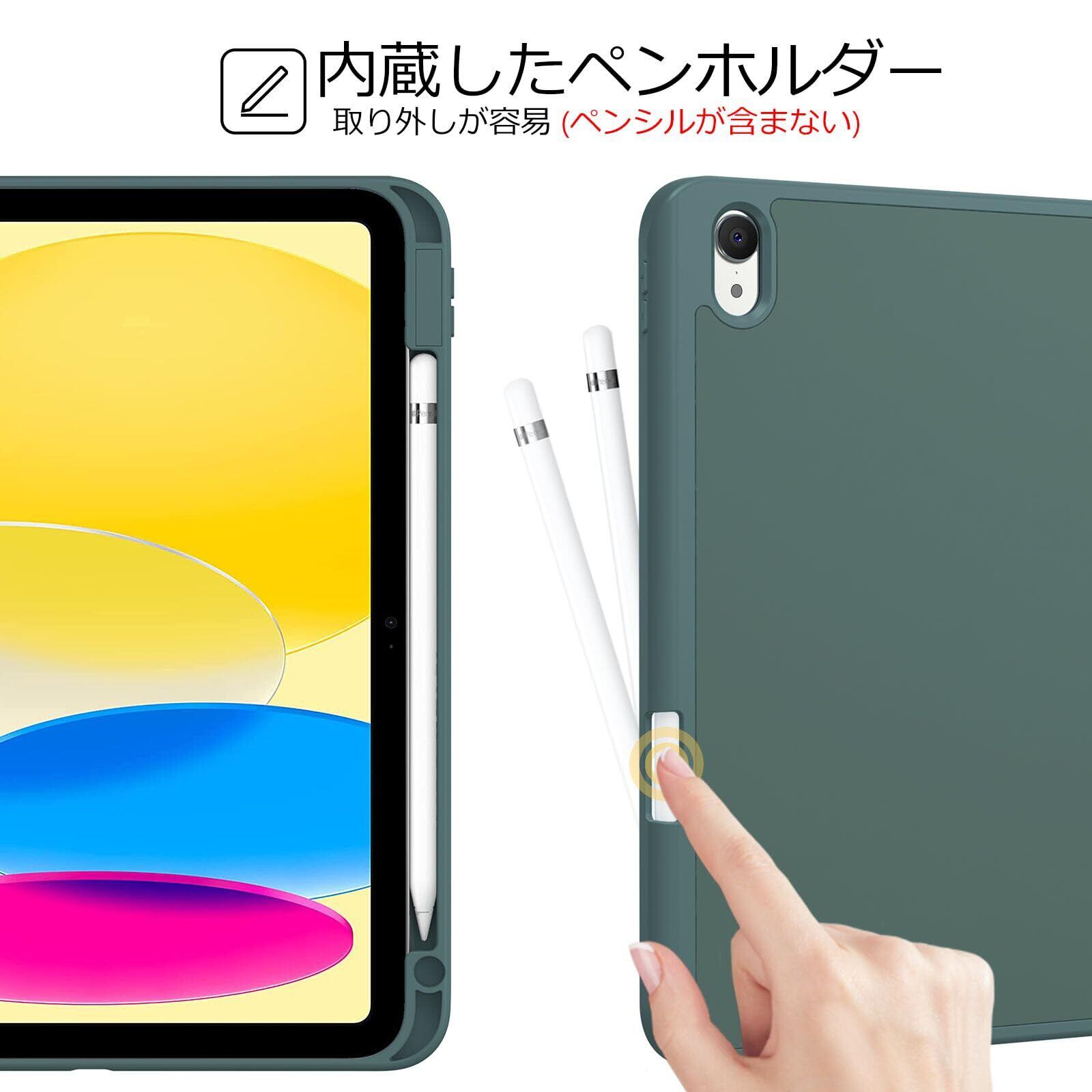ProCase iPad 10世代 ケース 2022 10.9インチ A2696 A2757 A2777 ペン収納 弾性のあるTPUバック 耐衝撃 三つ折り スタンド スマートカバー(グリーン)