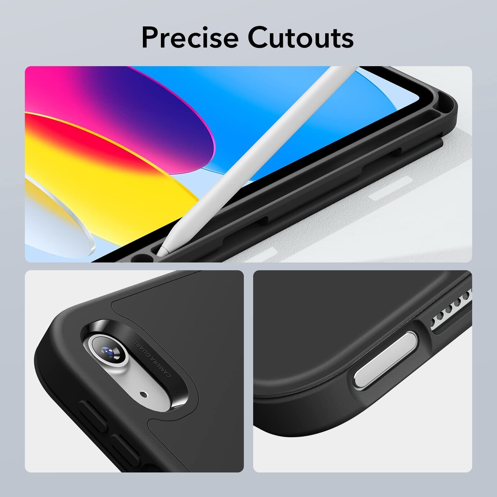 ESR iPad 10世代 ケース (2022年、10.9インチ) スリムな三つ折りスタンドケース ペンシルホルダー内蔵 Pencil 第2世代 対応 柔軟なバックカバー 自動ウェイク/スリープ 耐久性保護 Reboundシリーズ ブラック