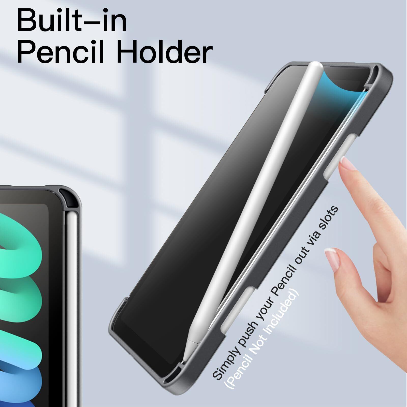 JEDirect iPad mini 6 ケース (8.3インチ、2021モデル) Pencil収納可能 透明バックカバー 薄型 スタンド 衝撃吸収 タブレットカバー オートウェイク/スリープ機能 (スペースグレイ)