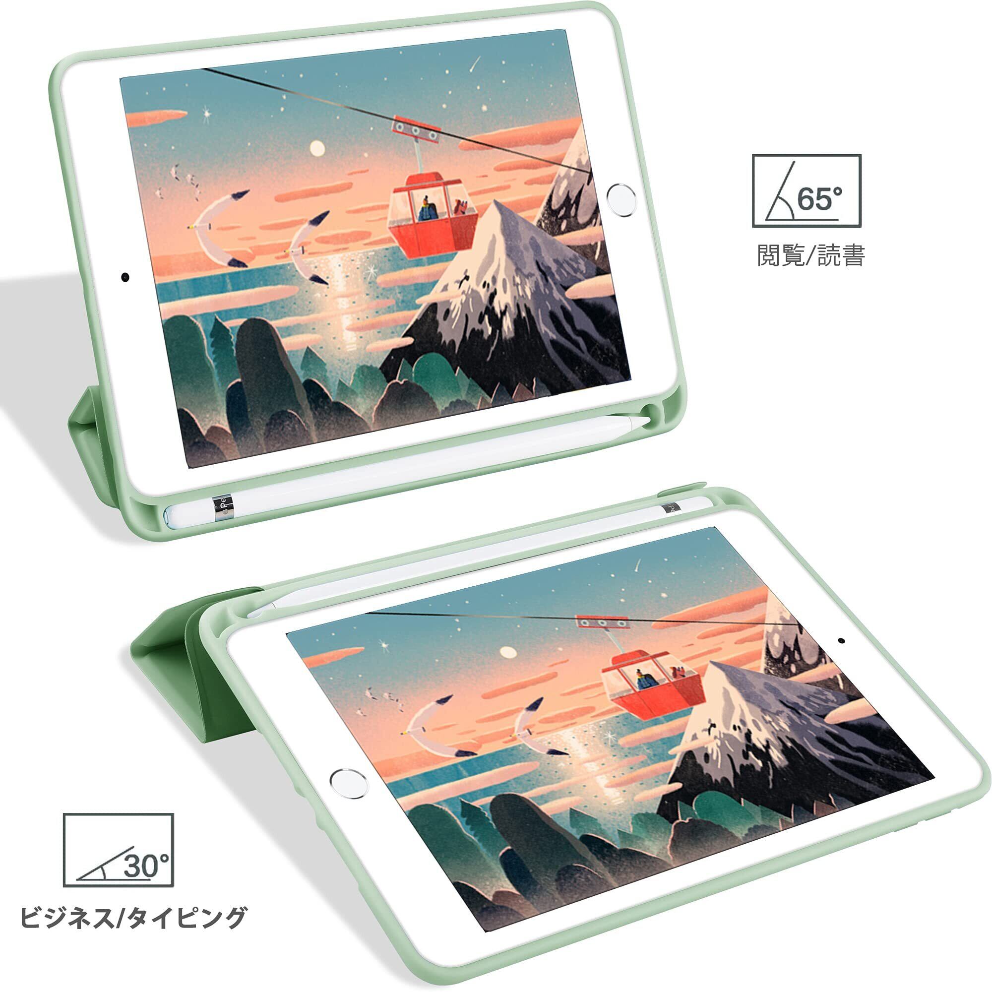 KenKe iPad Mini5 ケース 7.9インチ 軽量 スマート柔らかいTPUシリコン製カバー ペンホルダー付き 三つ折タイプ 全面保護型Apple Pencil収納&自動スリープ/ウェイクアップ機能付き 7.9インチiPad Mini 5th 世代 に対応 (抹茶グリーン)