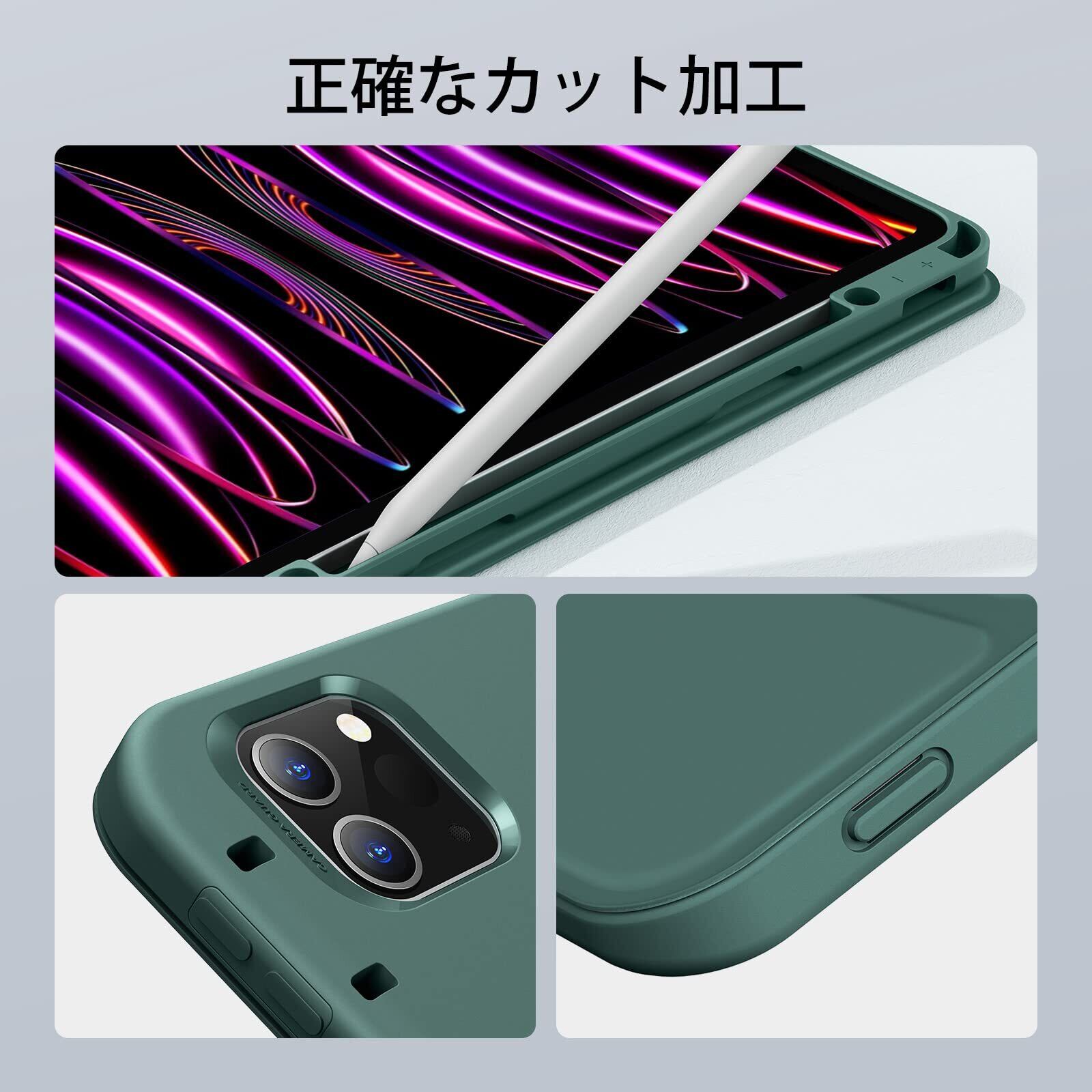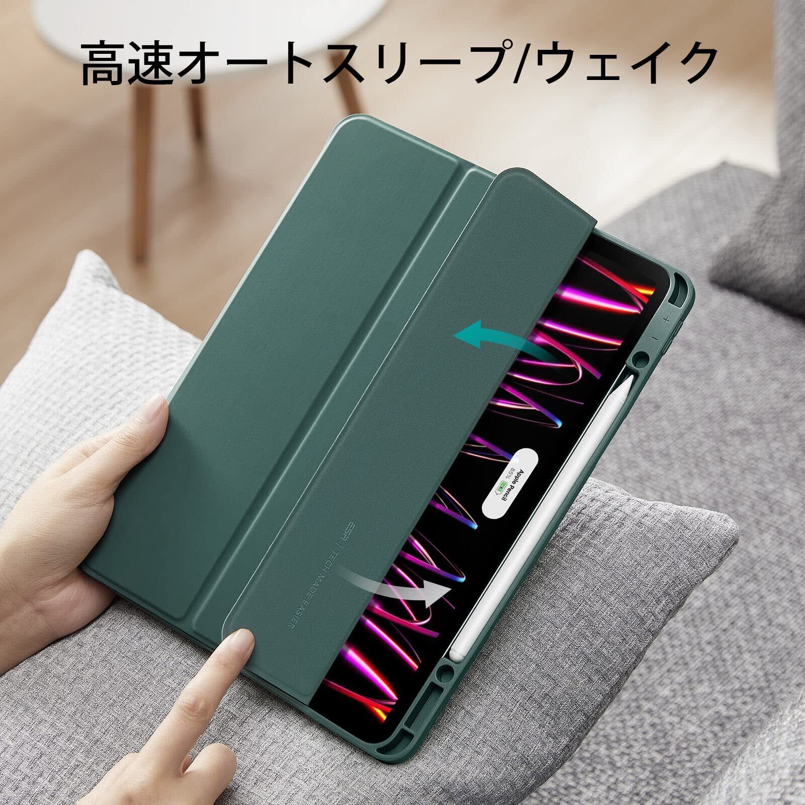 ESR iPad Pro 12.9インチ ケース(2022/2021 第4/3世代) 対応 ペンシルカバー ペンシルホルダー内蔵 Pencil 2対応 柔軟な背面カバー 三つ折りスタンド オートスリープ/ウェイク Rebound Series グリーン