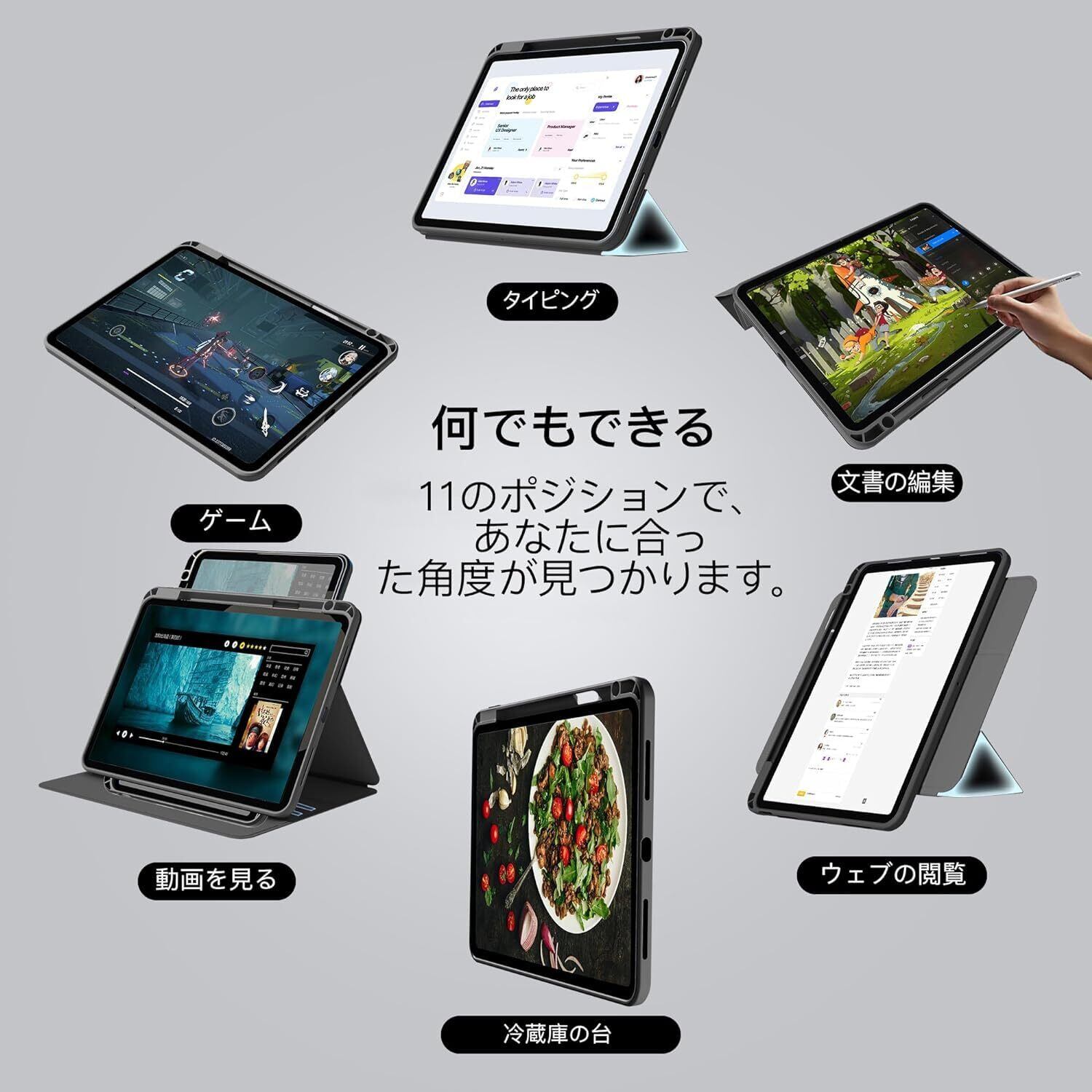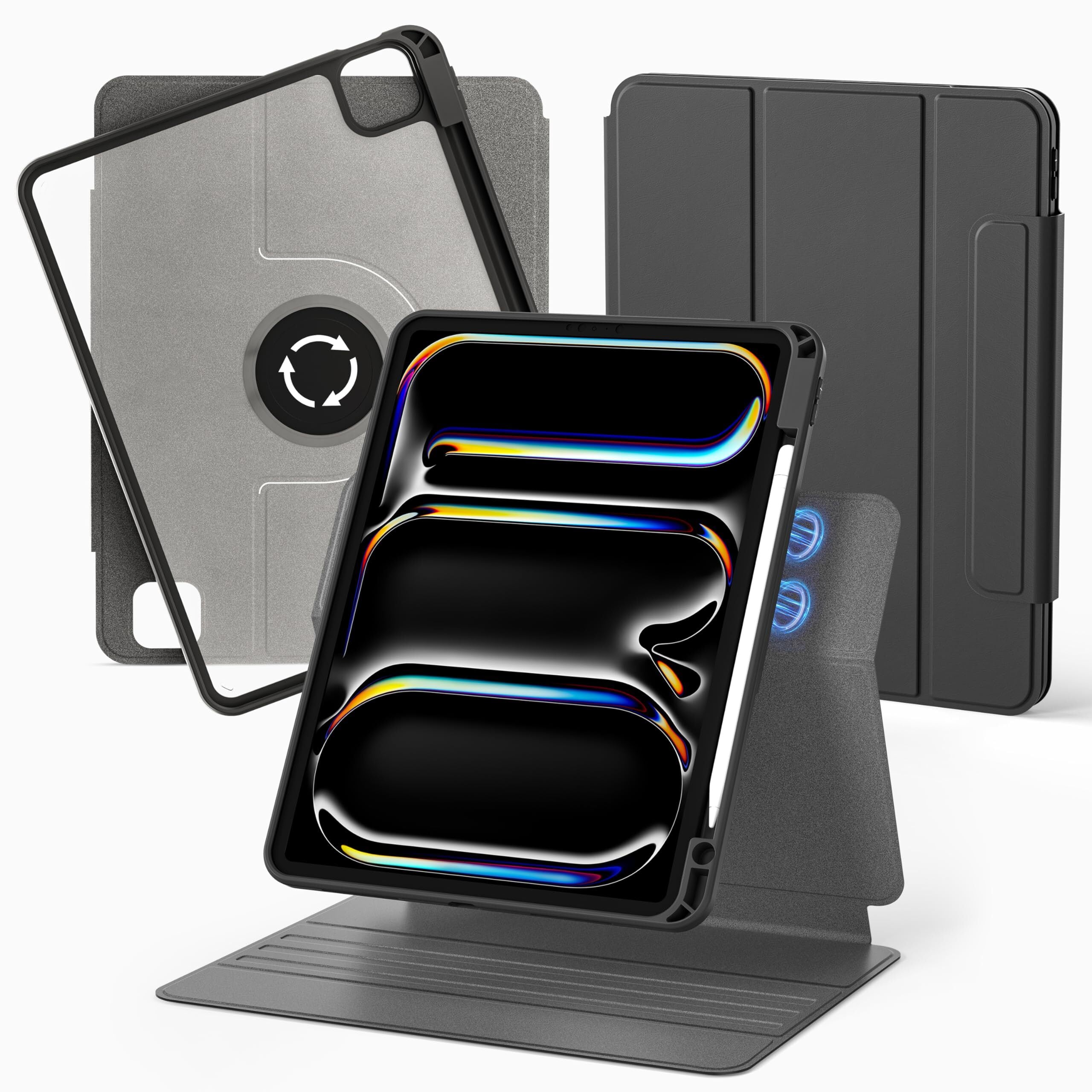 nimin iPad Pro 11インチ ケース 2024 (M4) 360度回転 マグネットス吸着式 折りたたみ 角度調整可能 Pencil 対応 衝撃保護 防塵 防水 軽量 薄型ケース,(iPad Pro 11インチ 2024 (M4),ブラック)