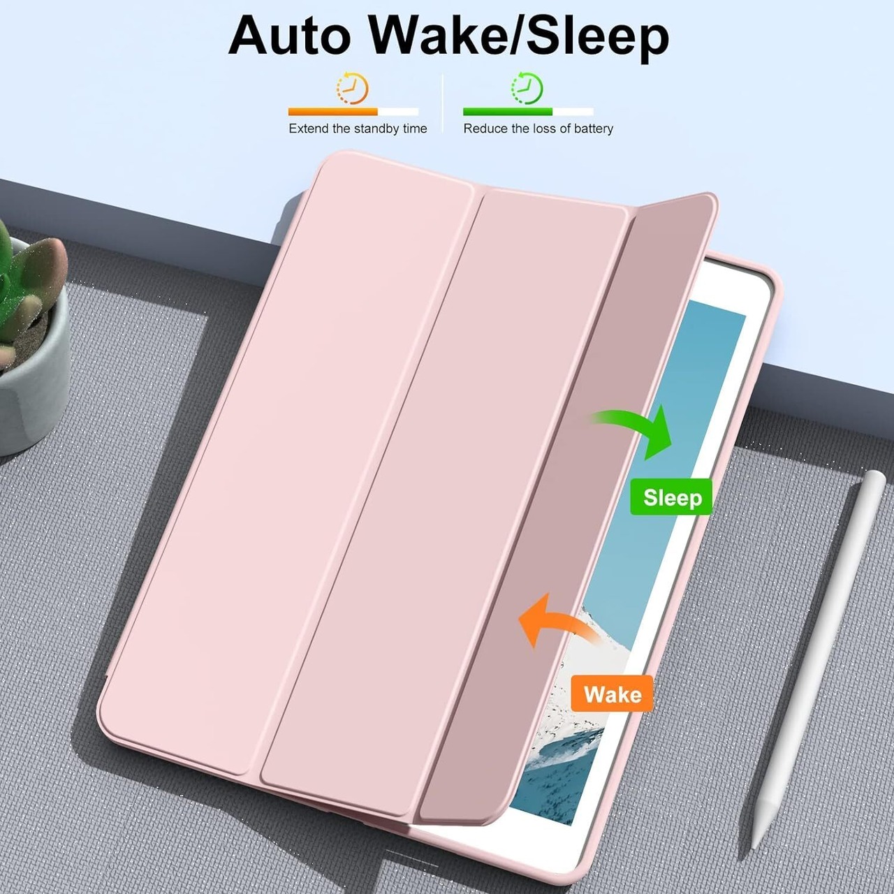 BQDIYOO iPadケース 2018/iPadケース 2017 9.7インチ 第6/5世代 Pencil収納に対応 三つ折りスタンド オートスリープ・ウェイク機能 超薄型 軽量 超薄 耐衝撃 スリム 快適 TPU シリコン素材 カバー 指紋防止 ピンク