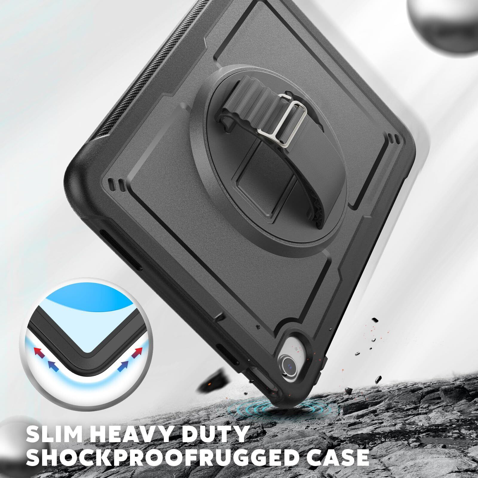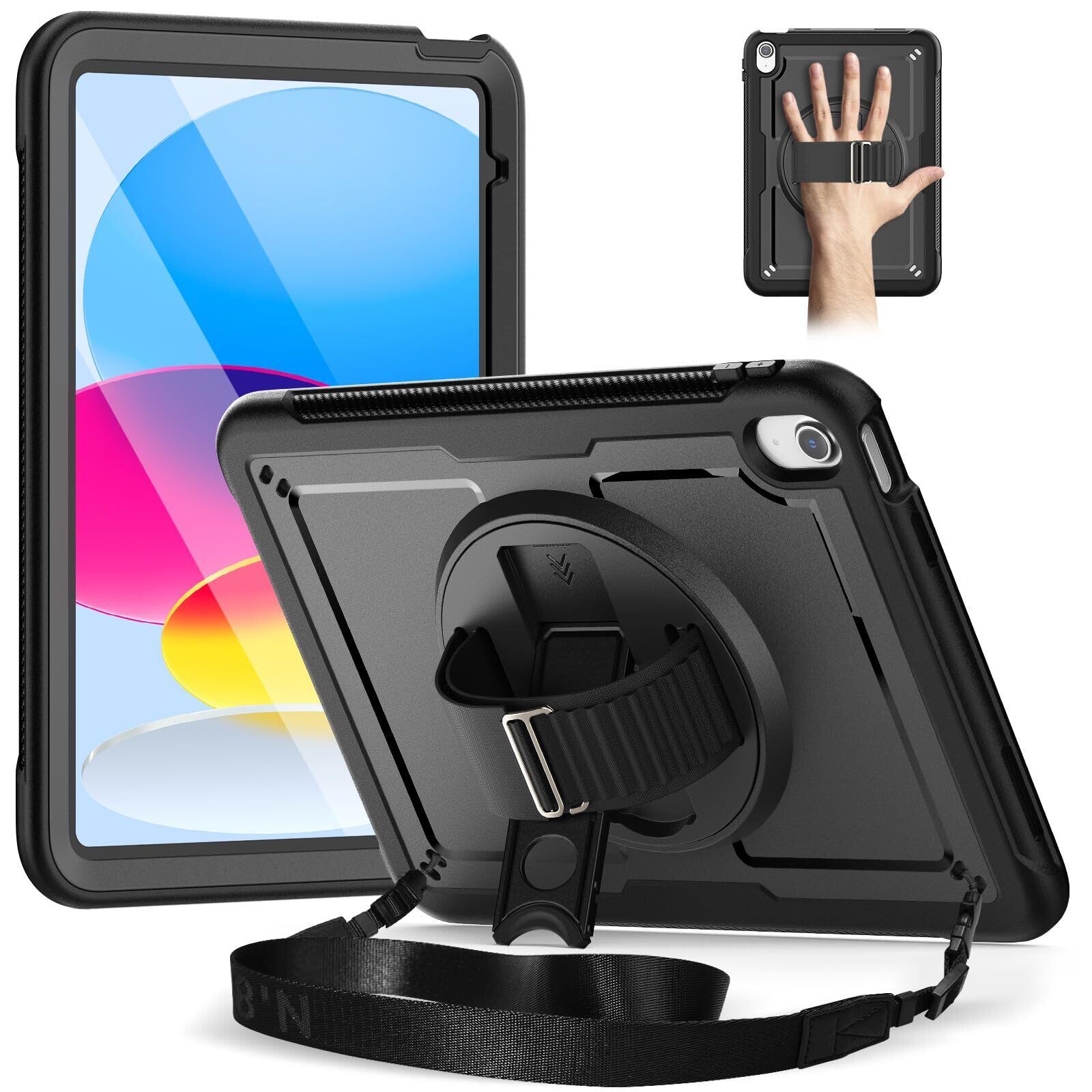 Timecity iPad 第10世代 ケース iPad 10世代 ケース 2022モデル 耐衝撃 360回転スタンド 保護フィルム付き ペン収納 ハンド&ショルダーストラップ 頑丈 耐久性がある 三層保護 iPad 第十世代 ケース (ブラック+ブラック)