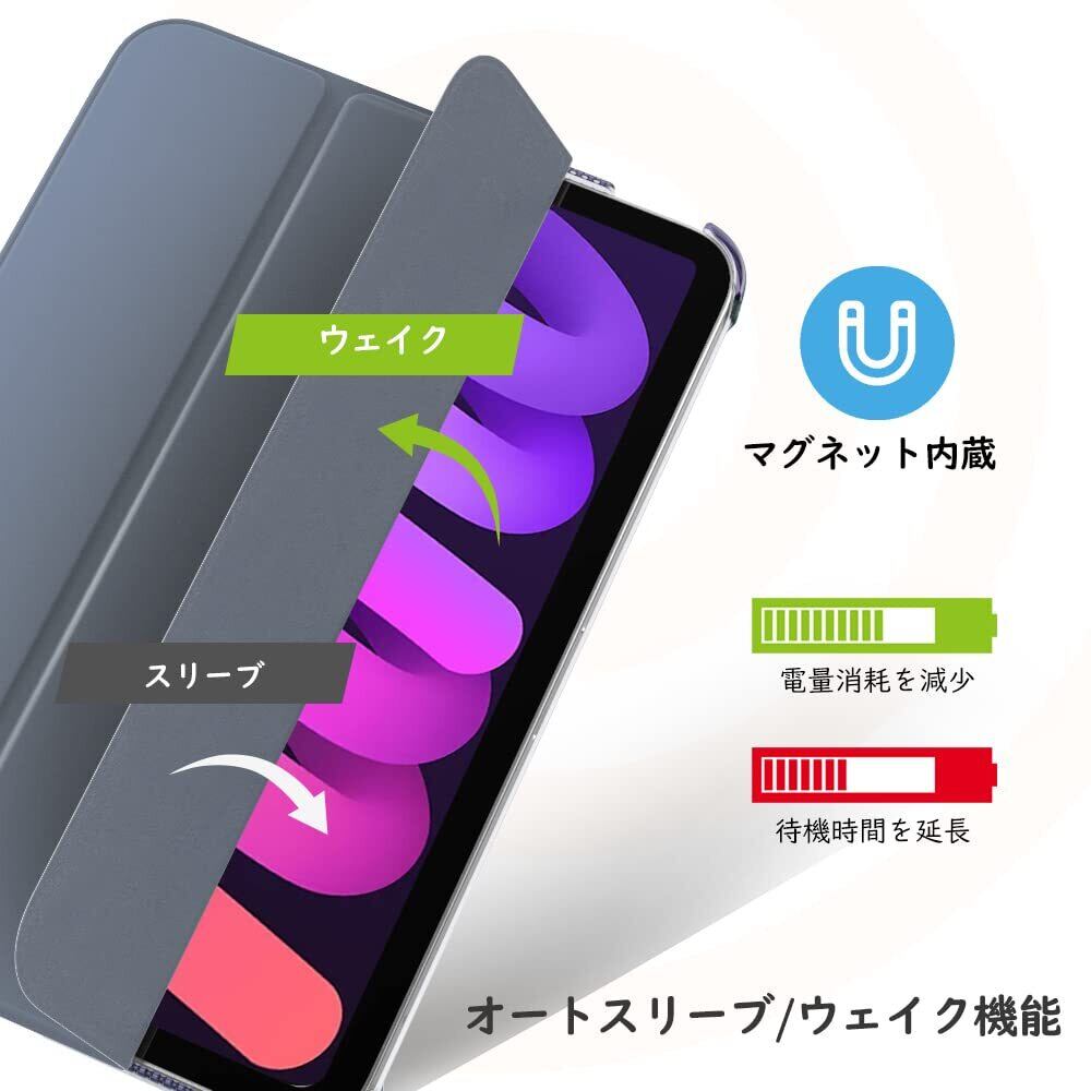 MoKo iPad mini 6 ケース iPad mini 第6世代 半透明 オートスリープ機能 Apple Pencil2のペアリング&充電に対応 三つ折りスタンド 高級PUレザー 裏地マイクロファイバー 軽量 薄型 傷防止 スマートケース GrayPurple