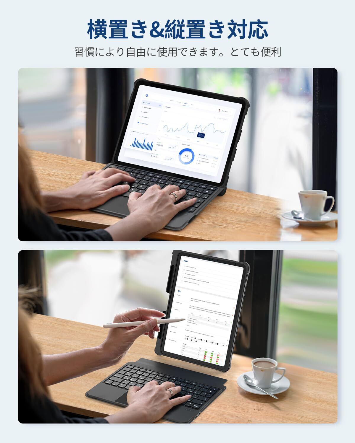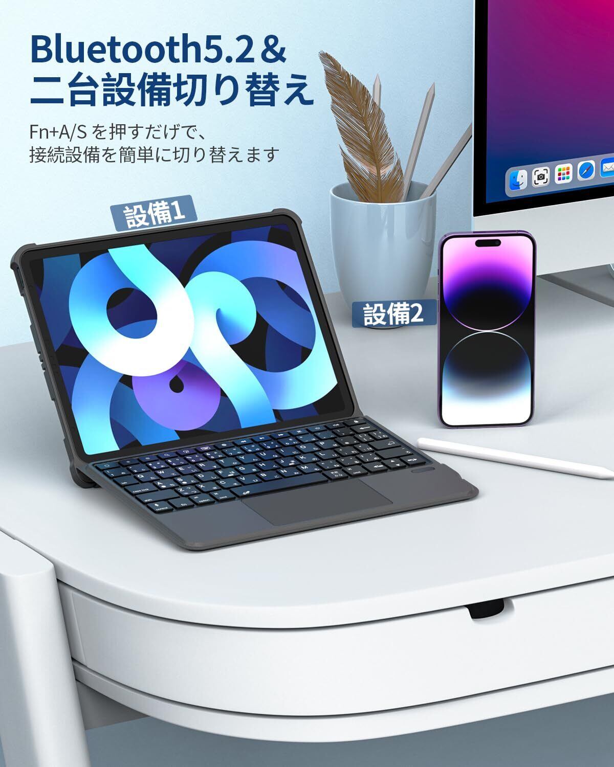 ✅【日本語配列& 2台設備が切替可能】iPad 9世代 キーボードはJIS基準日本語配列キーボードで、かな入力ができます。iPad Pro キーボード は新型 Bluetooth 5.2チップを採用し、マルチペアリング2台までのデバイスを自由に切り替えながら使用でき、とても便利。