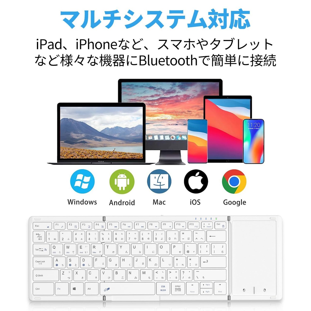 【高級版】Omikamo キーボード ワイヤレス 折り畳み式 ipad bluetooth 日本語配列 マルチペアリング ipad air タッチパッド付き iOS/Windows/Android/Mac/Google対応 無線 小型 コンパクト 薄型 ipad mini パンタグラフ 充電式 日本語説明書付き(白)