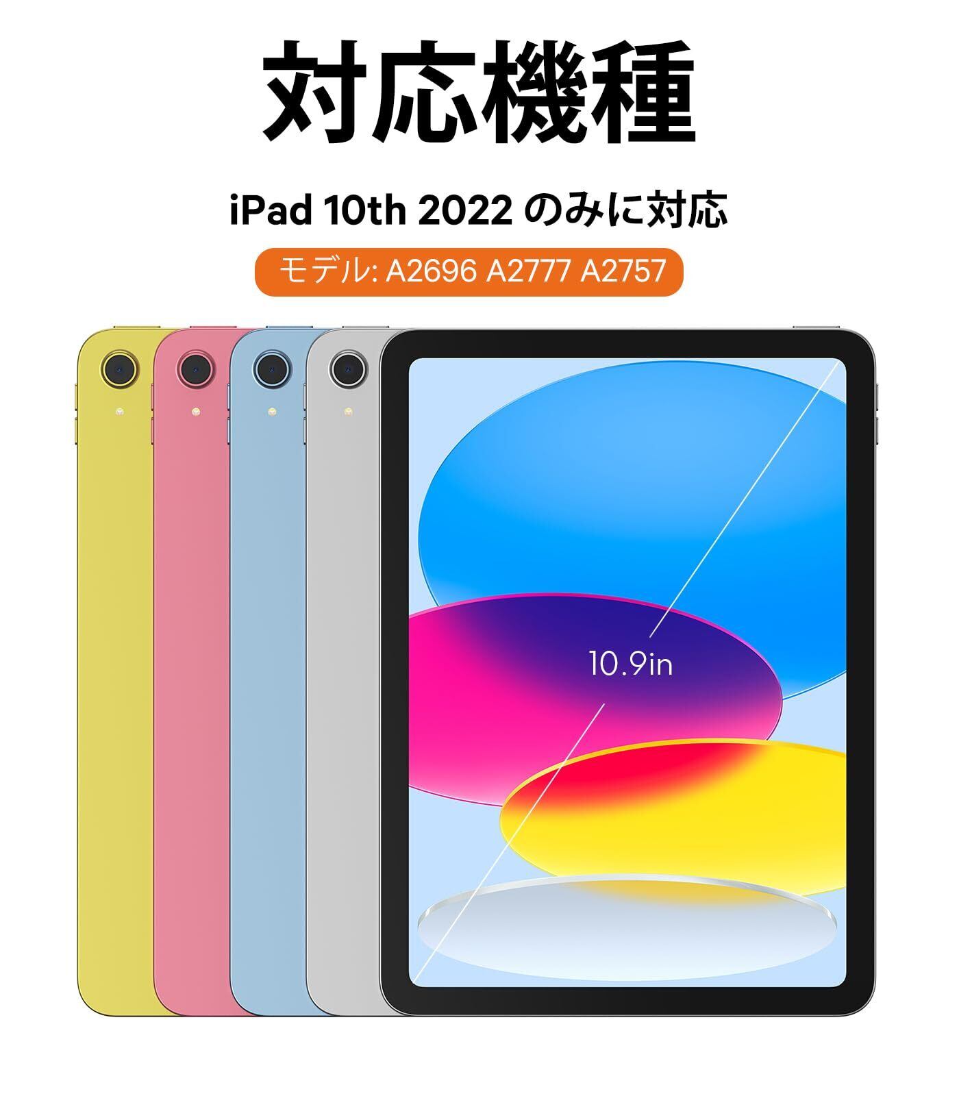 【互換性】10.9インチiPad第10世代2022年(モデル:A2696/A2777/A2757)専用にカスタマイズされています。注意: 10.9インチiPad Air第5世代と第4世代とは互換性がありません。タブレットマグネットの位置が異なるため、キーボードに完璧に適応できない可能性があります。ご購入前に、背面のiPadモデル番号をご確認ください。