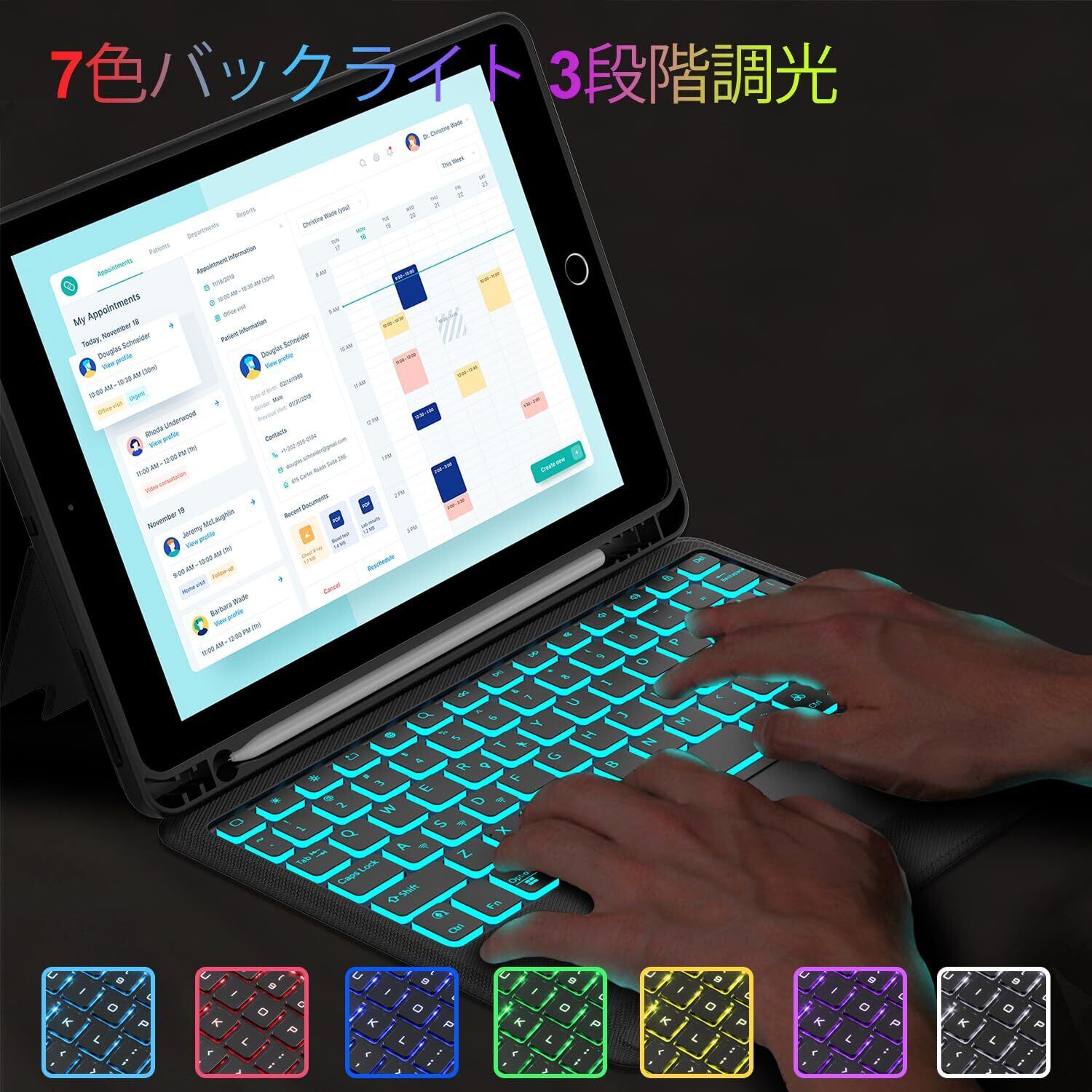 高級版「横/縦両方対応」 iPad 第9世代 キーボード ケース 10.2インチ 第8世代 第7世代 キーボード タッチパッド搭載 超薄 軽量 分離式 ワイヤレス bluetoothキーボードカバー iPad Air3/Pro 10.5 兼用 多角度調整 バックライト付き Pencil収納 日本語取扱説明書付き(ブラック)