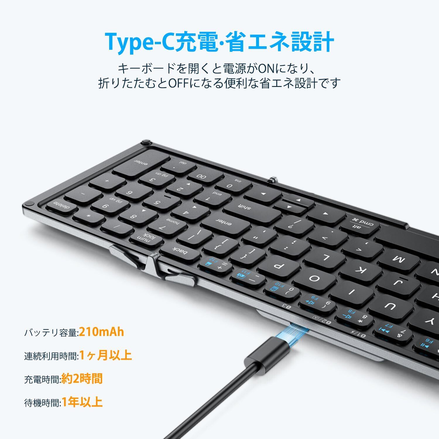 iClever Bluetooth ワイヤレス キーボード 折り畳み モバイルキーボード テンキー付き US配列 マルチペアリング Type-C充電 ipad ミニキーボード コンパクト スマホ用 iPad用 iPhone用 スタンド付き Windows/iOS/Android 対応 BK09