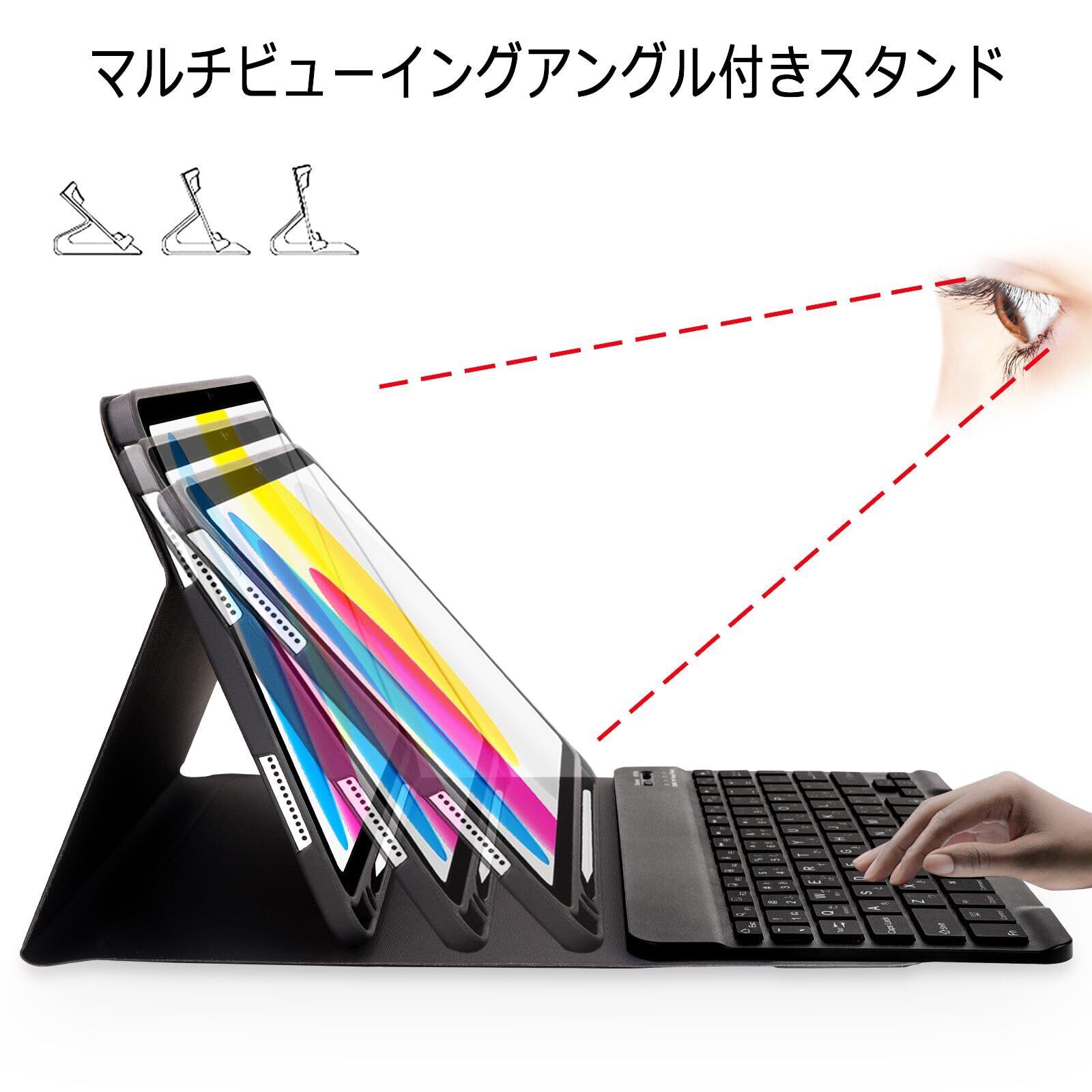 【カバーが複数の視野角に調整】iPad 第10世代レザーケースのレザーは滑りにくく、お好みの角度に合わせてiPadタブレットの立つ位置を調整でき、動画鑑賞、読書、お絵描きなどの楽しみを楽しめます。ソフトなiPadバックカバーは滑りにくいデザインで、衝撃、傷、ほこりからiPadを保護します