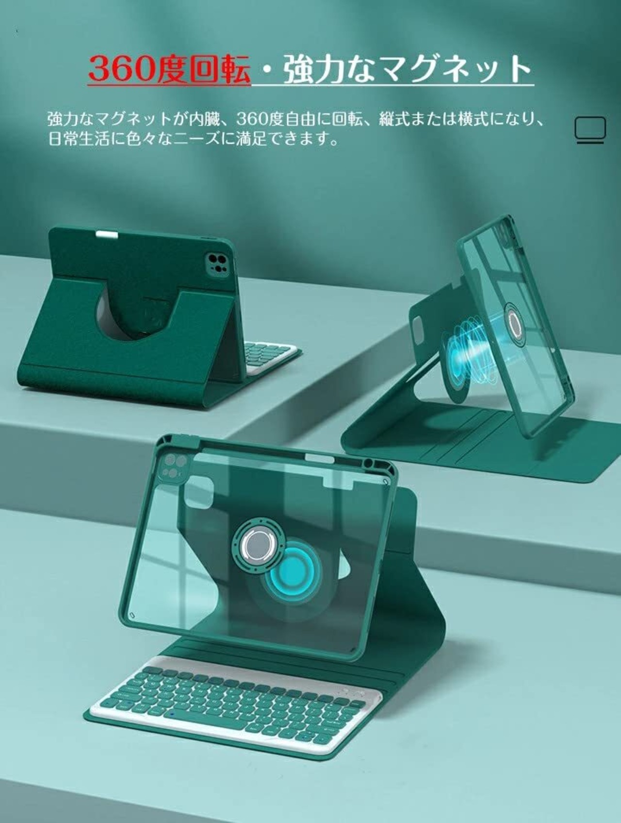 360度回転 iPad 10.2 iPad 第 9 8 7 世代 キーボードケース 縦置き対応 iPad 10.2インチ iPad9 iPad8 iPad7 キーボード カバー ワイヤレス ツートンカラー マグネット 分離式 多機能 可愛い