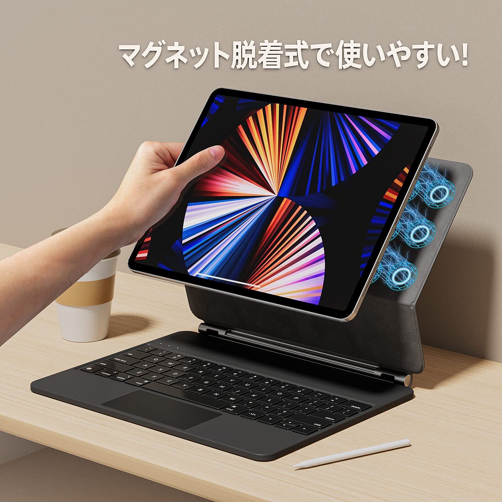 iPad Air 13インチ2024/Pro 12.9インチ キーボード(第6世代 / 第5世代 /第4世代 / 第3世代) フローティングマグネットデザイン、タッチパネル搭載、バックライト、Bluetoothキーボード、自動スリープ/ウェイク機能付き、Type-C急速充電、磁気吸着 (iPad Pro 12.9インチ、ブラック、日本語配列)