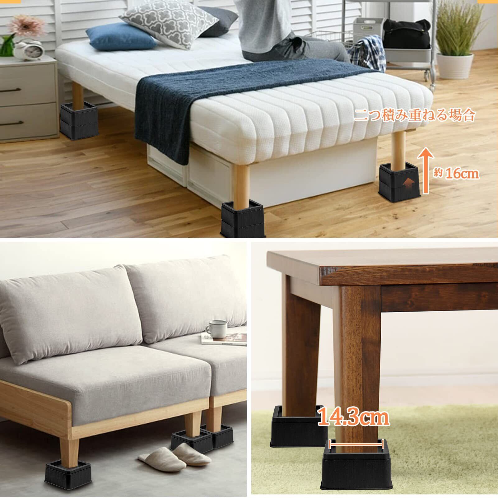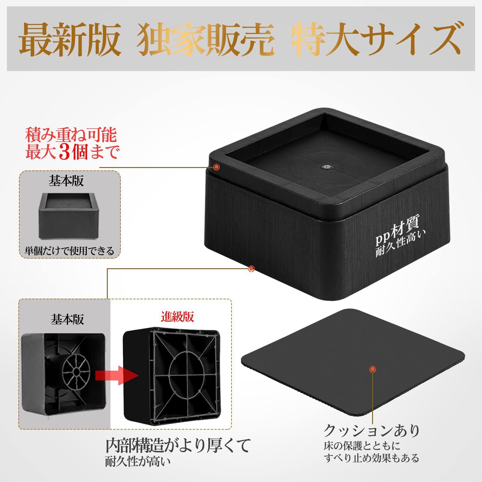 Uping 継ぎ脚 高さ調節 ベッド・こたつ・テーブルの高さ調整 高さ上げる 4個セット テーブル脚台 高さ調整 暖房器具 8cmアップ 積み重ねる 最大24cmまで 大型家具や家電に最適 (耐荷重1000kg) ブラック