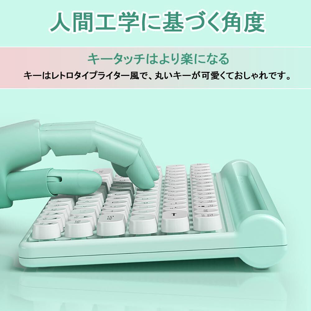 タイプライター風キーボード マウスセット【マルチ接続・2.4GHz&BLuetooth】3台まで同時 静音 コンパクト 可愛い 充電式 US配列 ブルートゥース マウス キーボード ipad、スマホ、タブレット、パソコン、ノートパソコン用bluetooth キーボードマウス windows/mac/ios/android対応(ピンク)