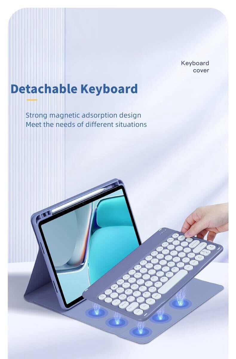 iPad Pro 13インチ 2024キーボード ケース 人気 超軽量 ペンシルホルダー付き iPad Pro 13 第7世代 (M4) カバー 脱着式 ワイヤレス bluetooth キーボード付き ペンシル充電収納可能 丸形 キー 人気 かわいい 可愛い,ブルー