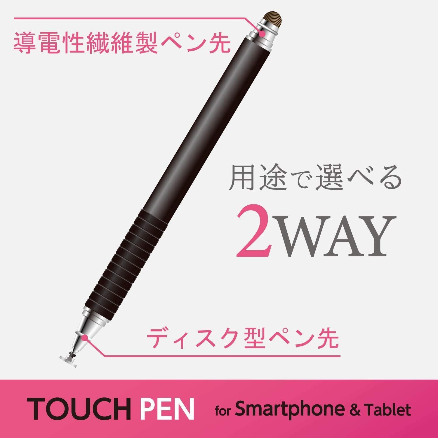 エレコム タッチペン スタイラスペン 2WAYモデル 導電繊維 & ディスク (交換ペン先付) [ iPhone iPad android で使える] 簡易パッケージ ブラック PWTP2WY01BK