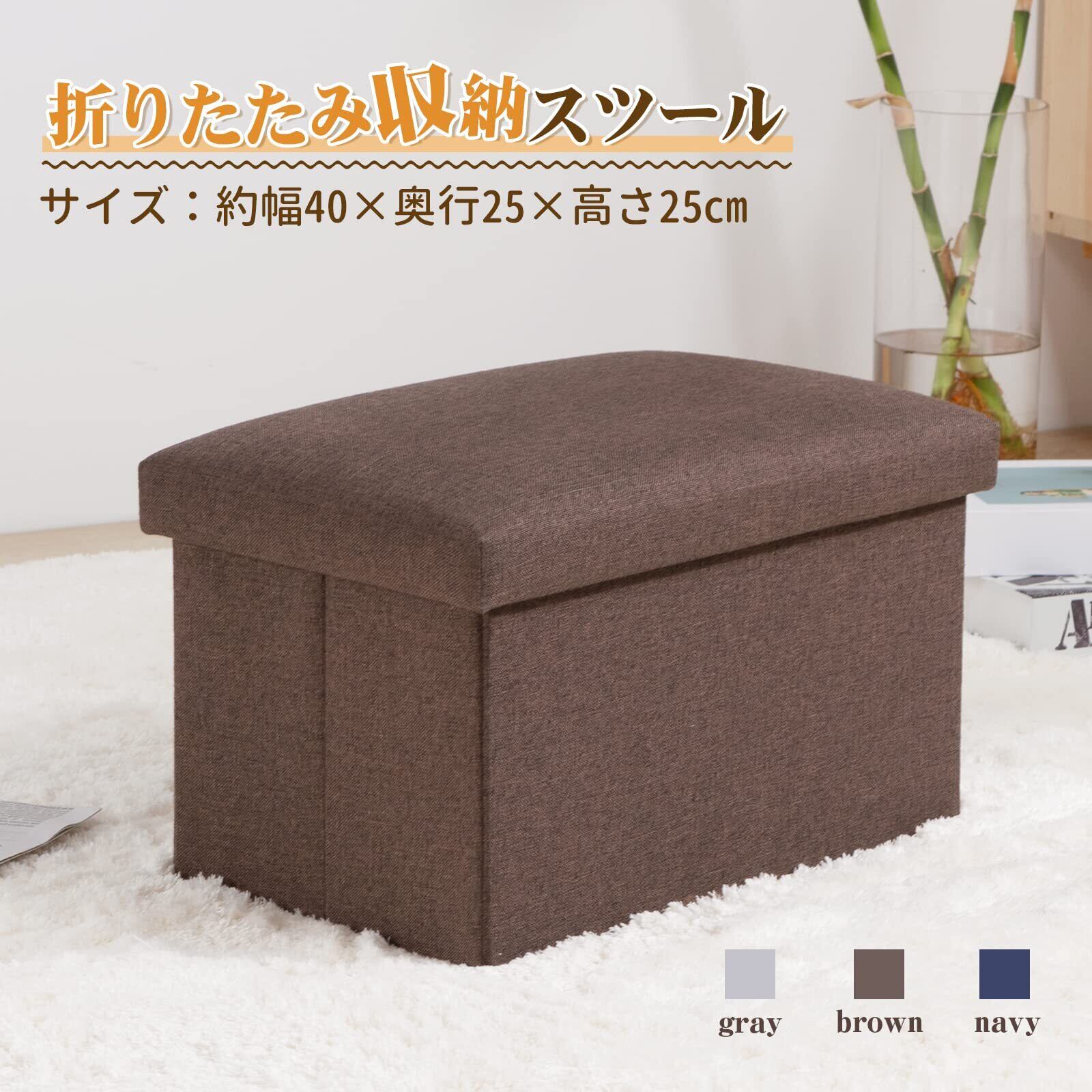 【折りたたみ収納スツール】約幅40×奥行25×高さ25cm ブラウン