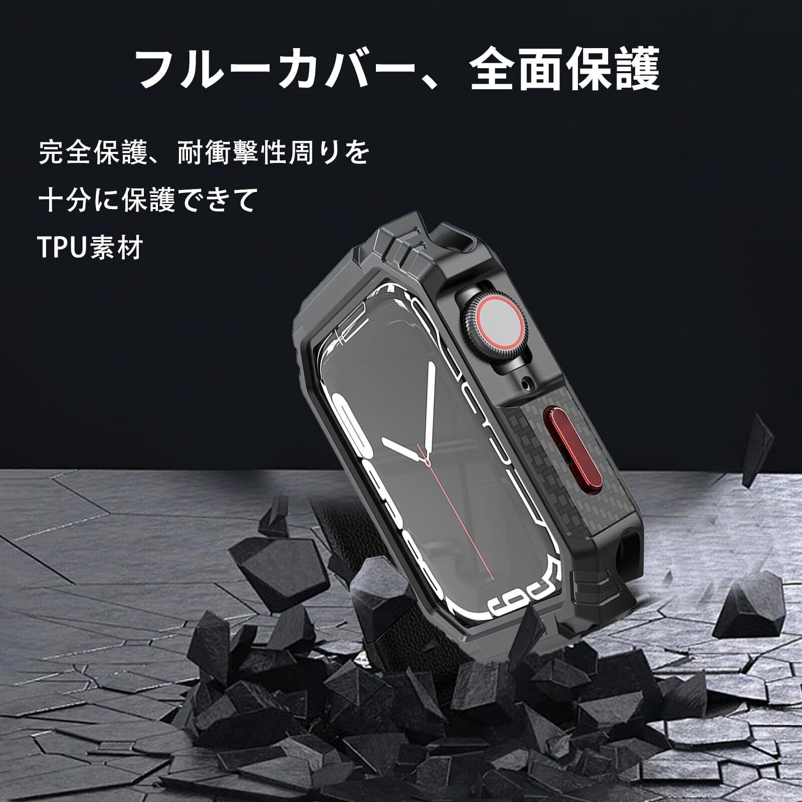YAODLE Apple Watch ケース 45mm アップルウォッチ TPU 保護ケース Series 9/8/7 対応 カーボンろう付けパターン 落下 衝撃 吸収 タフネスデザイン すり傷 防止 耐衝撃 保護カバー 米軍 MIL規格(45mm,ブラック)