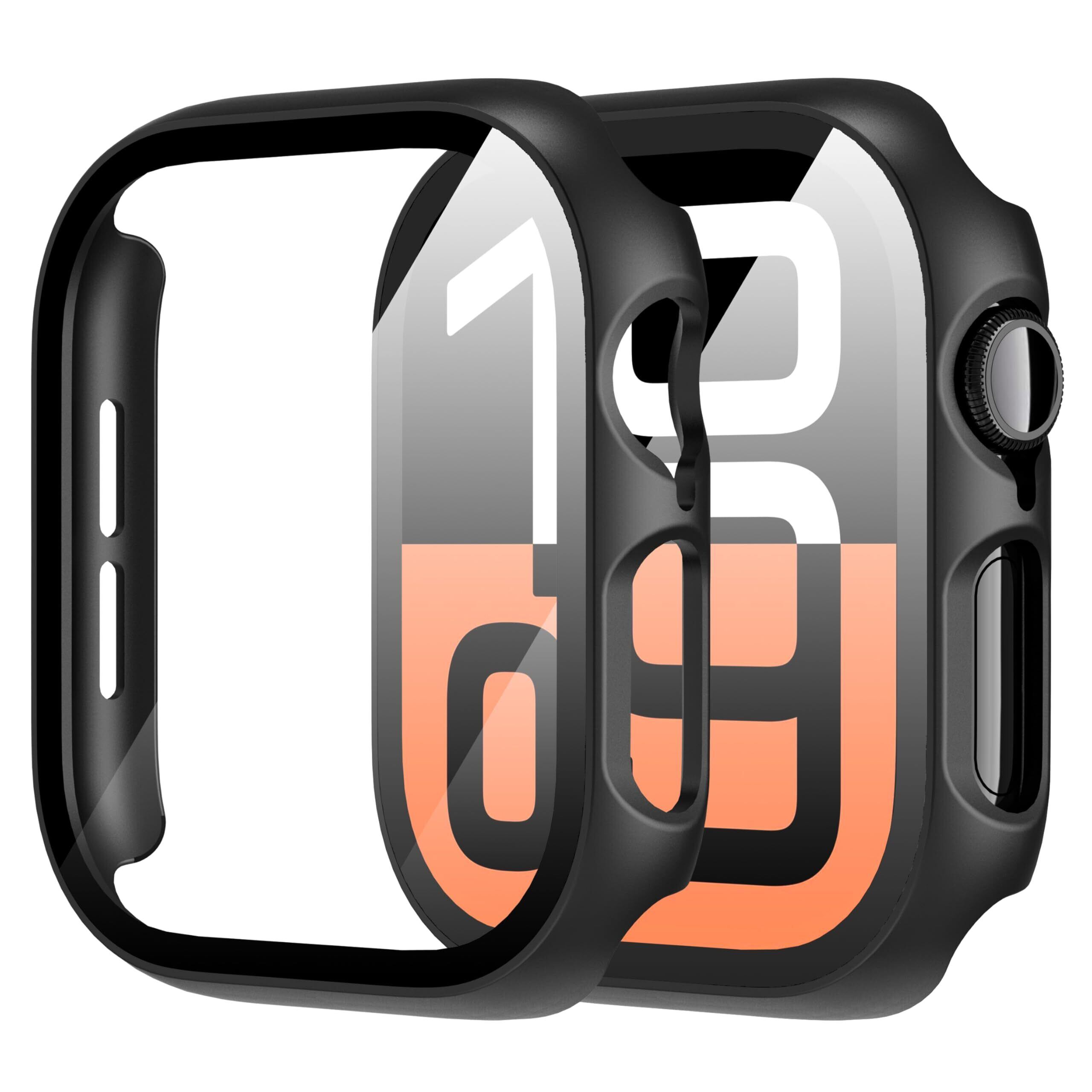 Diruite for Apple Watch Series 10 46mm保護ケース(2個)アップルウォッチケース 硬質PC一体型保護カバーfor iWatch 10 46mm保護カバー-(46mm 黒+黒)