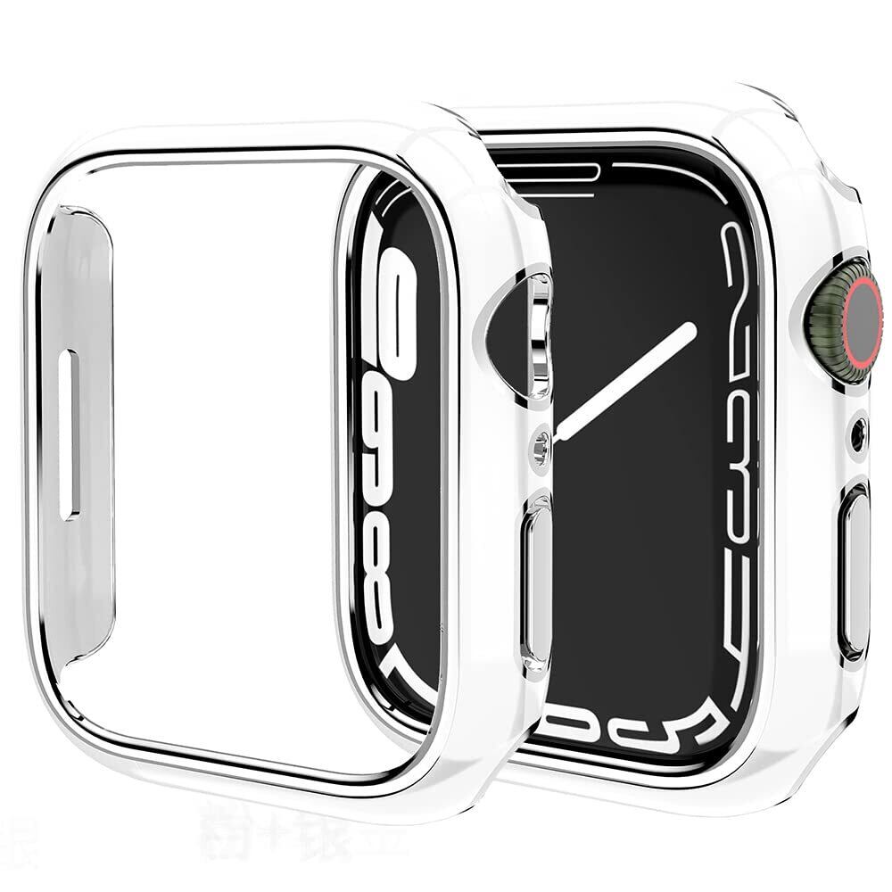 Miimall 対応 Apple Watch 8 45mm/7 45mmケース アップルウォッチシリーズ 8 2022/7 ケース PC材質オシャレ設計 傷防止 防塵 軽量 防衝撃 保護バンパー Apple Watch Series 7 側面カバー(45mm|ホワイトx縁:シルバー)
