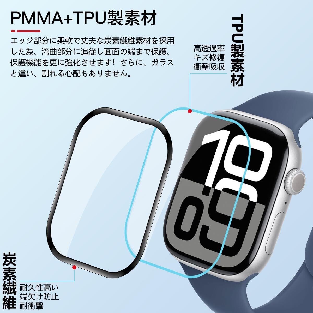 対応 Apple Watch series 10 42mm フィルム 画面保護フィルム 【3枚セット】 対応 アップルウォッチ 10 42mm 保護フィルム 柔軟なTPU製 炭素繊維 3D曲面 カバー 24時間自動修復技術 衝撃吸収 高透過率 高感度タッチ 指紋防止 撥油性 疎水性 自動吸着 気泡ゼロ 貼り付け簡単 対応 Apple watch 10 42mm 液晶保護フィルム